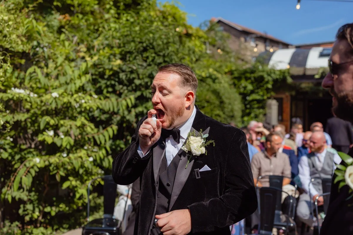 Wedding morning prep took place at Aylestone Court Hotel, giving us a calm and light filled start to the day. Shona was already in full spirits, laughing throughout prep and flashing a peace sign every time the camera caught her eye. These moments set the tone for the entire wedding and made for some brilliant, natural photos and film.