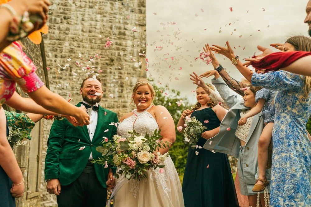 After the lovely ceremony, there was a fun confetti moment outside. We then captured some lovely images of Emily and Denzel and the wedding party, before guests headed to Jordanston Farm in Tenby for the marquee wedding reception.