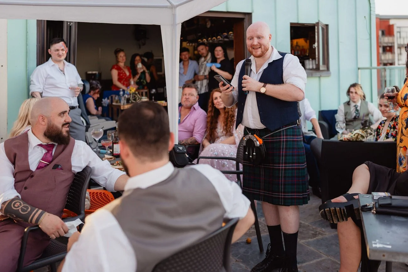 The ceremony took place at Clyne Farm Centre, with the reception at The Observatory, sitting right on the promenade overlooking Swansea Bay. It was bright, joyful, slightly chaotic in places and completely unapologetic about being different.