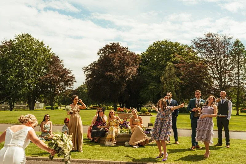 While guests mingled, we whisked Lucy and Sam away for a short couple’s shoot around the gardens and lake. Despite a few giggles (and bubbles), they were total pros, and we made the most of the stunning setting. The spring light and soft clouds gave us gorgeous tones for some truly romantic portraits.