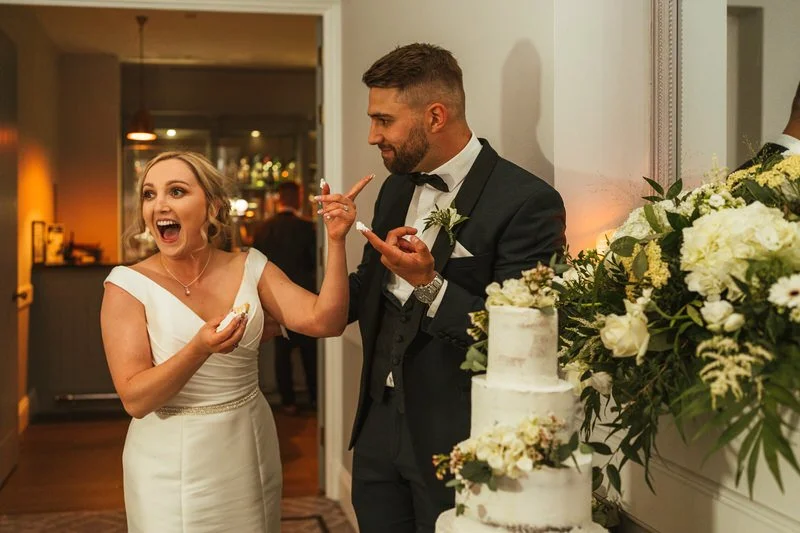 The evening celebrations kicked off with a delicious three-tiered wedding cake from Cakesicle Creations, then Lucy and Sam took to the floor for their first dance. From there, the party properly started.