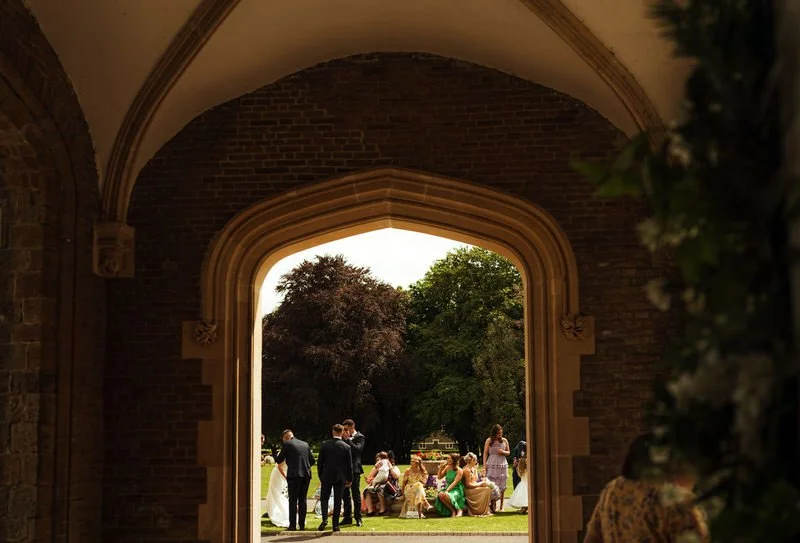 Back inside, Courtyard Hall had been beautifully dressed for the wedding breakfast, with high ceilings, chandeliers, and huge windows flooding the space with light. Guests welcomed the couple into the room with cheers, and speeches from Sam and his best man Will hit the perfect mix of heartfelt and hilarious. After dinner, guests spilled back out into the gardens to enjoy the evening sun and explore the castle.