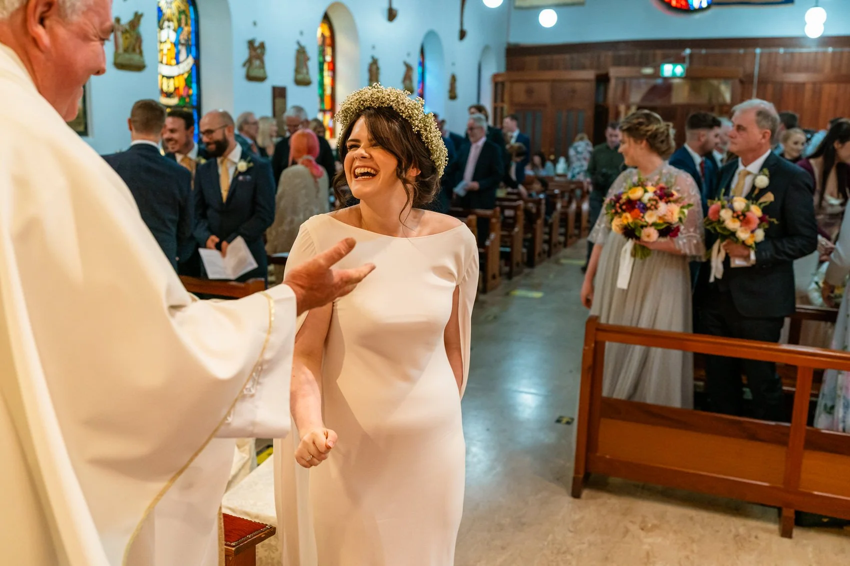 St Patrick’s Church is a pretty little roman catholic church built in 1880. It has a rich history and with a busy calendar and lots of community work, remains today as relevant to the community as it has always been. Churches can be dark spaces for wedding photographers, but St Patrick’s white walls and beautiful stained-glass windows threw light around the church. That I played with to create even more beautiful images. Us destination wedding photographers do love our light!