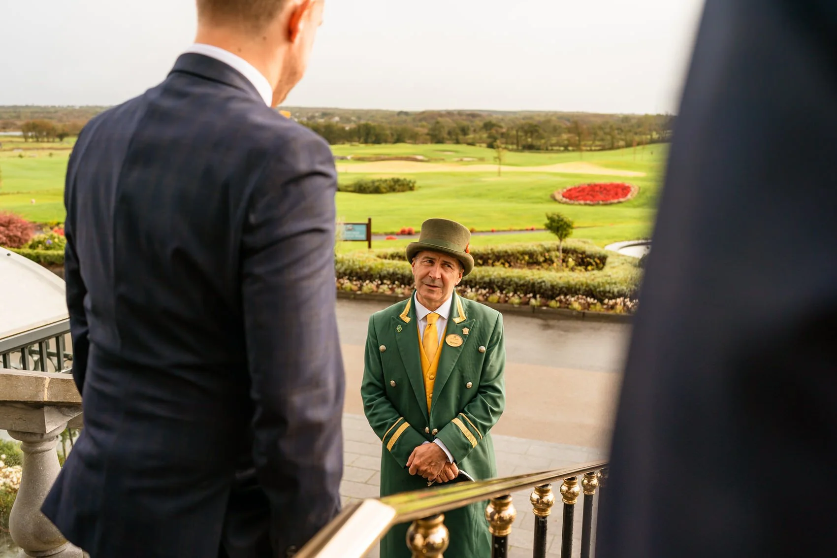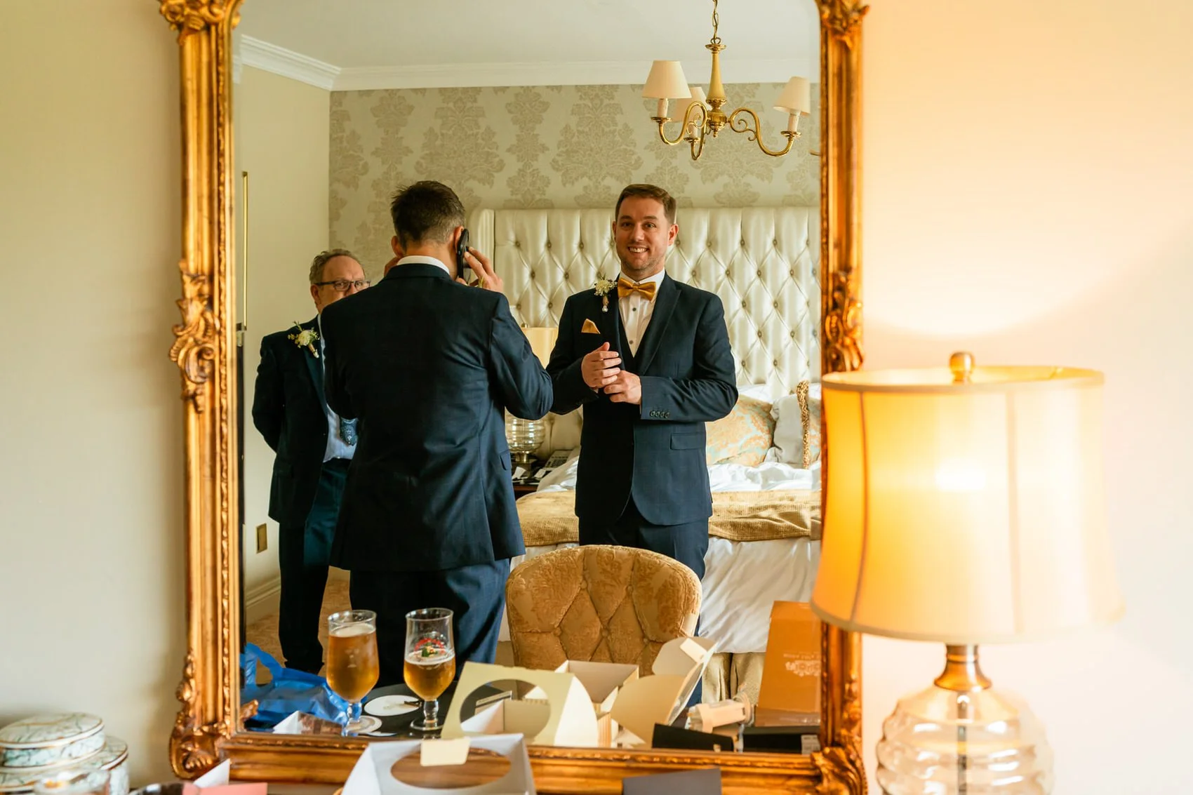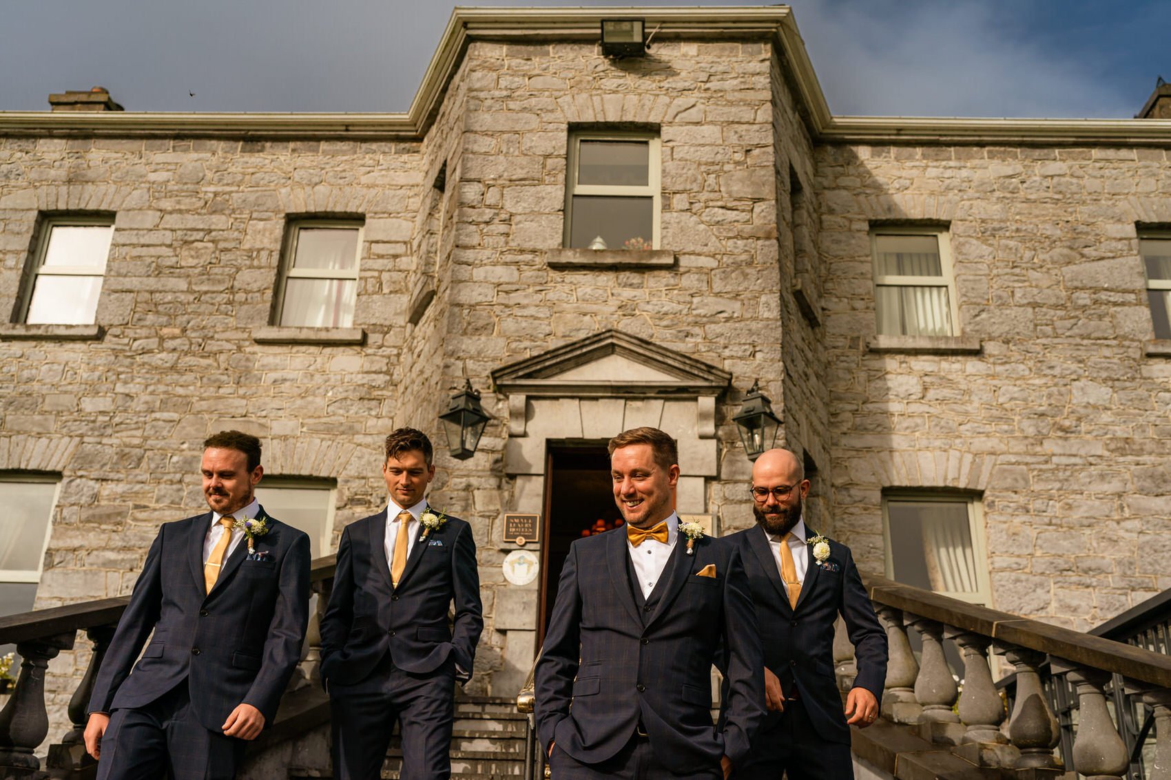 On the day, I first caught up with Jon and his grooms party who were getting ready at Glenlo Abbey Hotel, which is where the wedding reception was taking place. Jon was in the safe hands of his grooms’ party, and the boys were all in good spirits as they made their final preparations. They all looked very smart in dark blue three-piece suits from Next with gold ties.