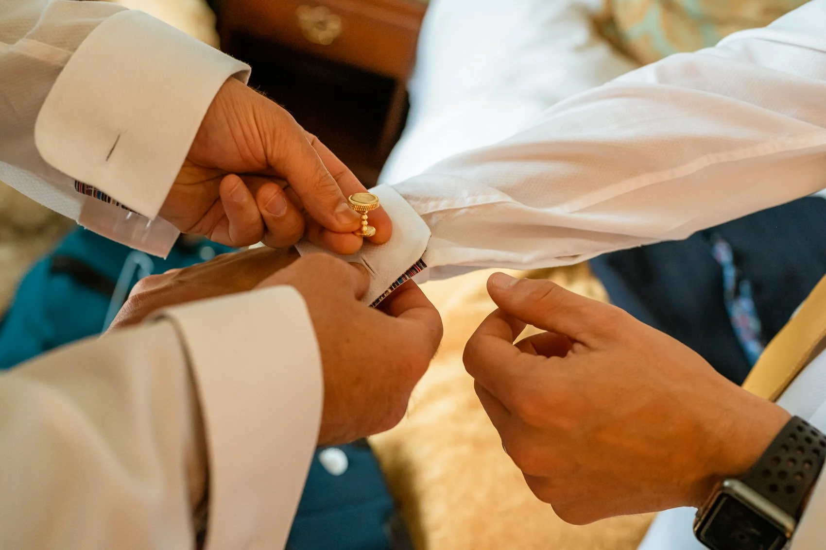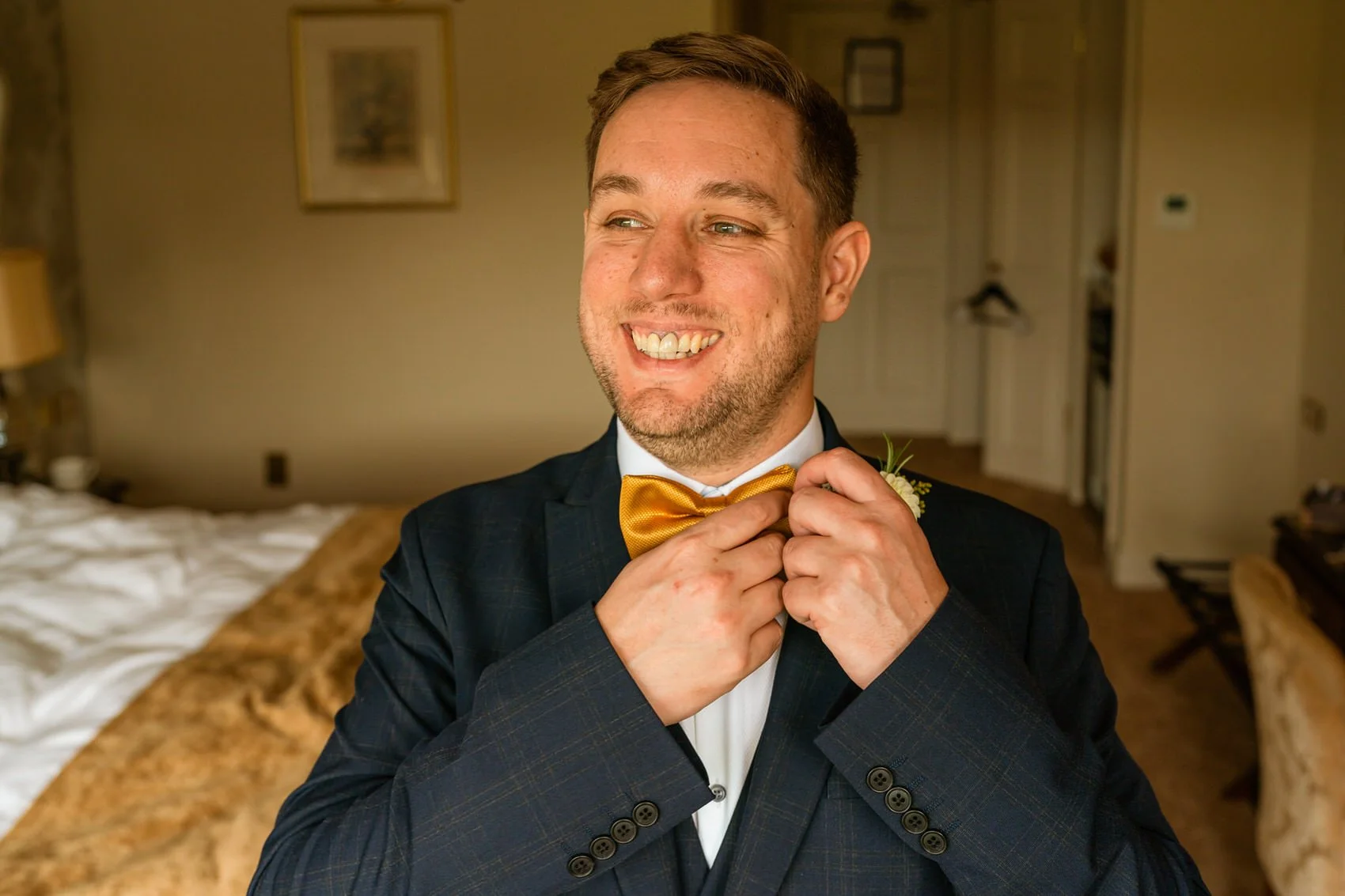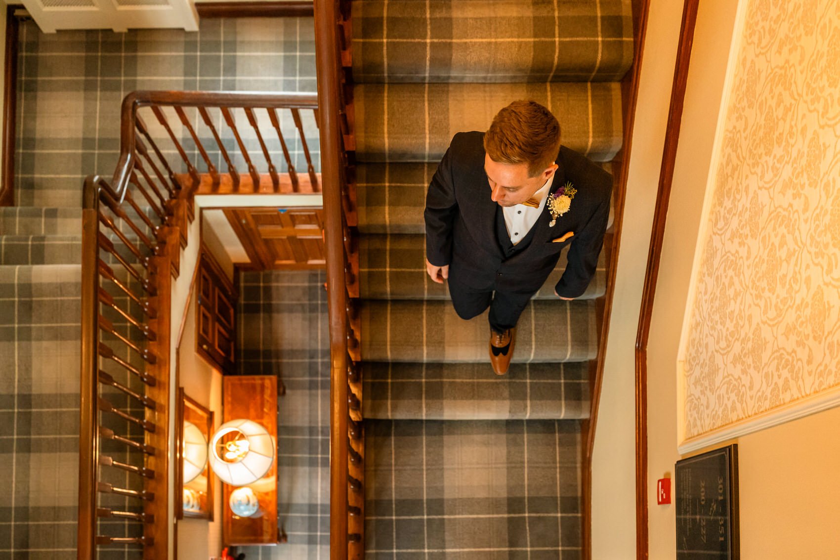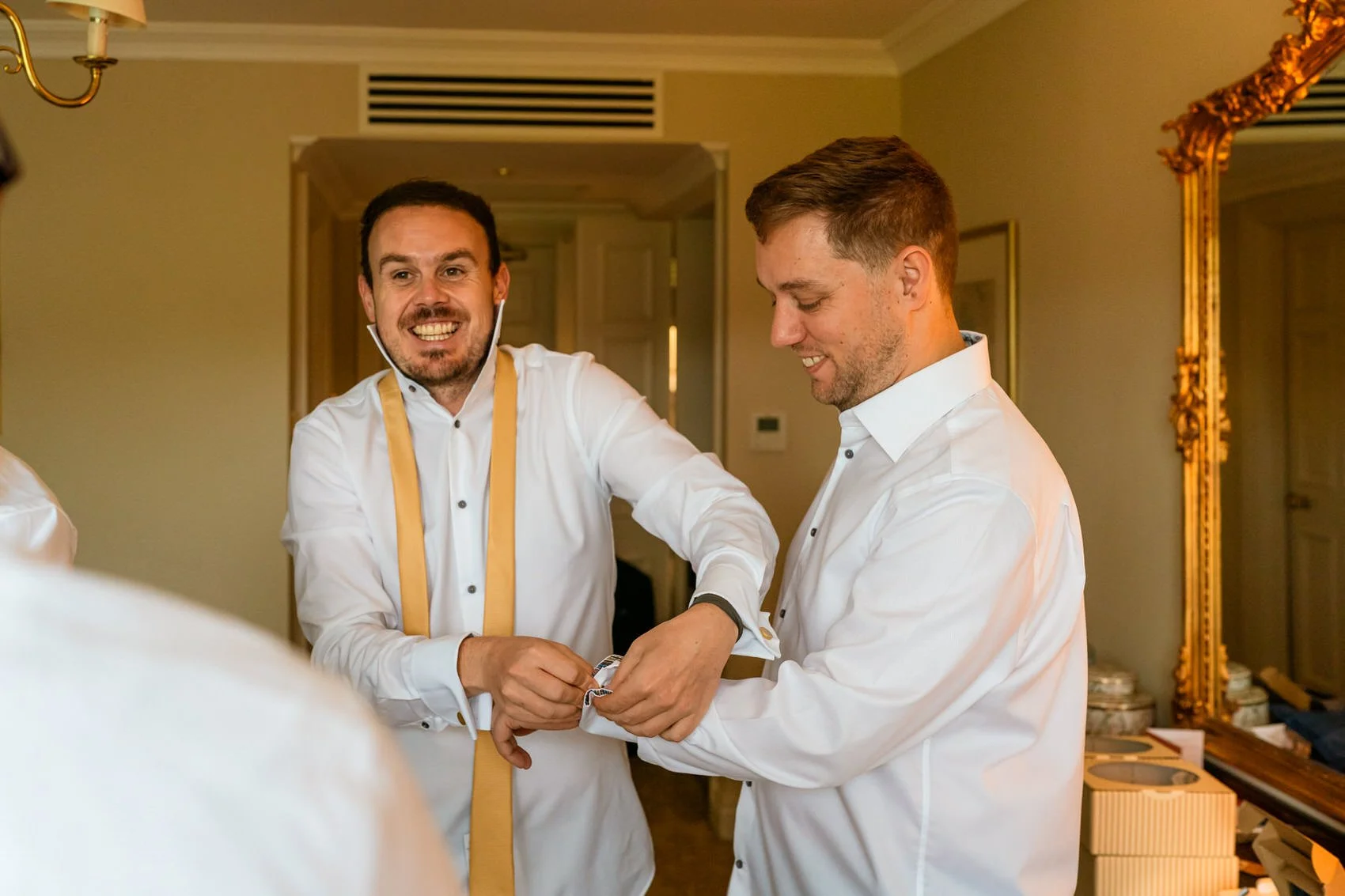 On the day, I first caught up with Jon and his grooms party who were getting ready at Glenlo Abbey Hotel, which is where the wedding reception was taking place. Jon was in the safe hands of his grooms’ party, and the boys were all in good spirits as they made their final preparations. They all looked very smart in dark blue three-piece suits from Next with gold ties.