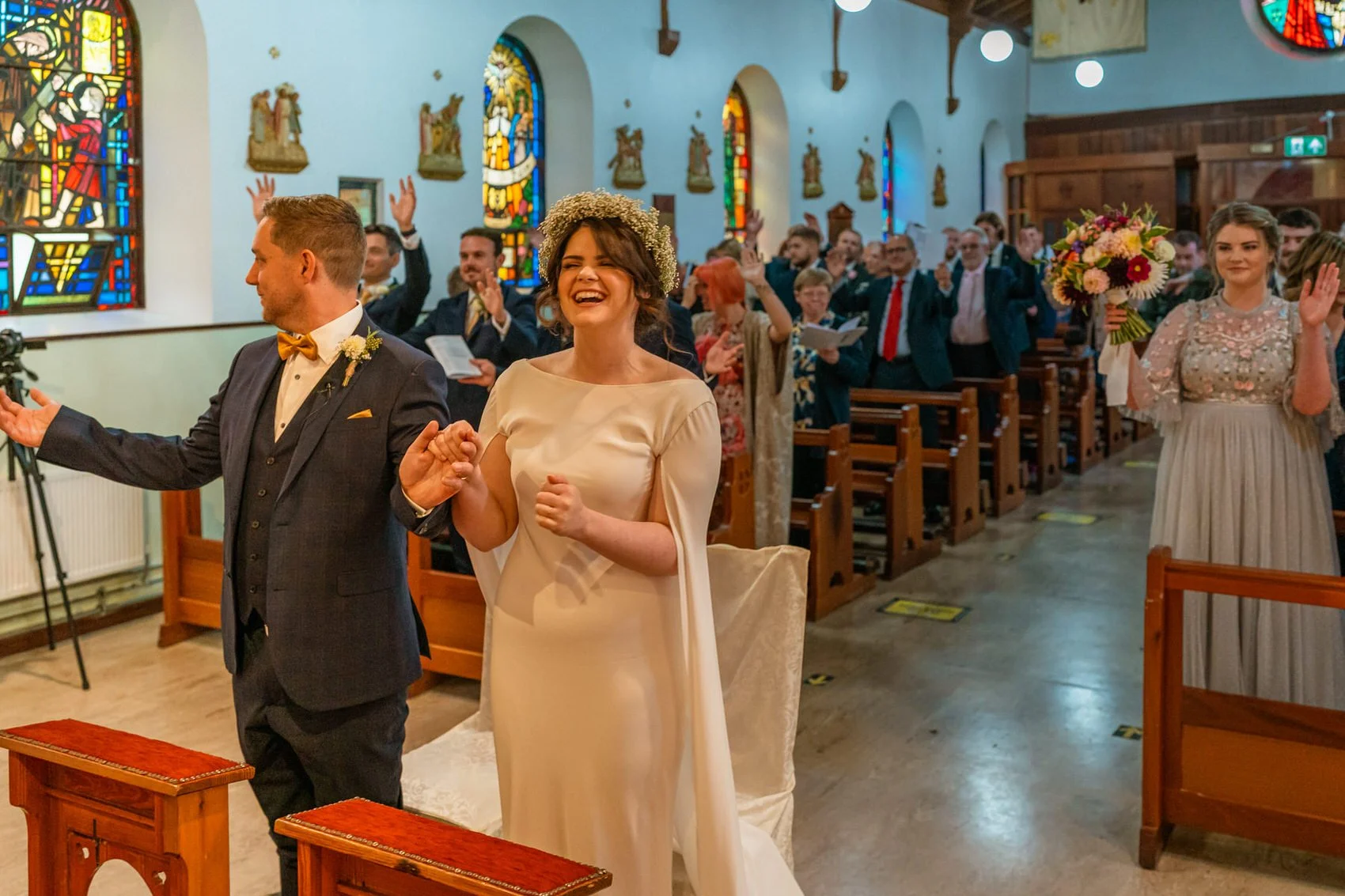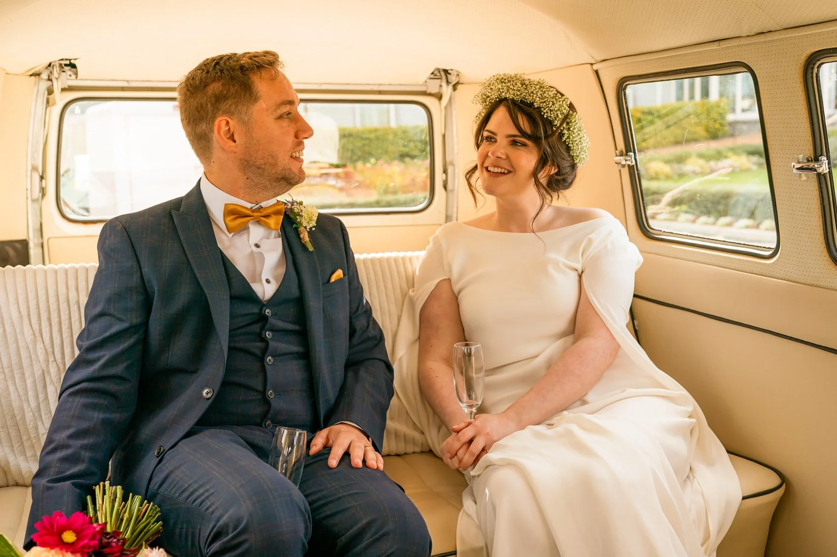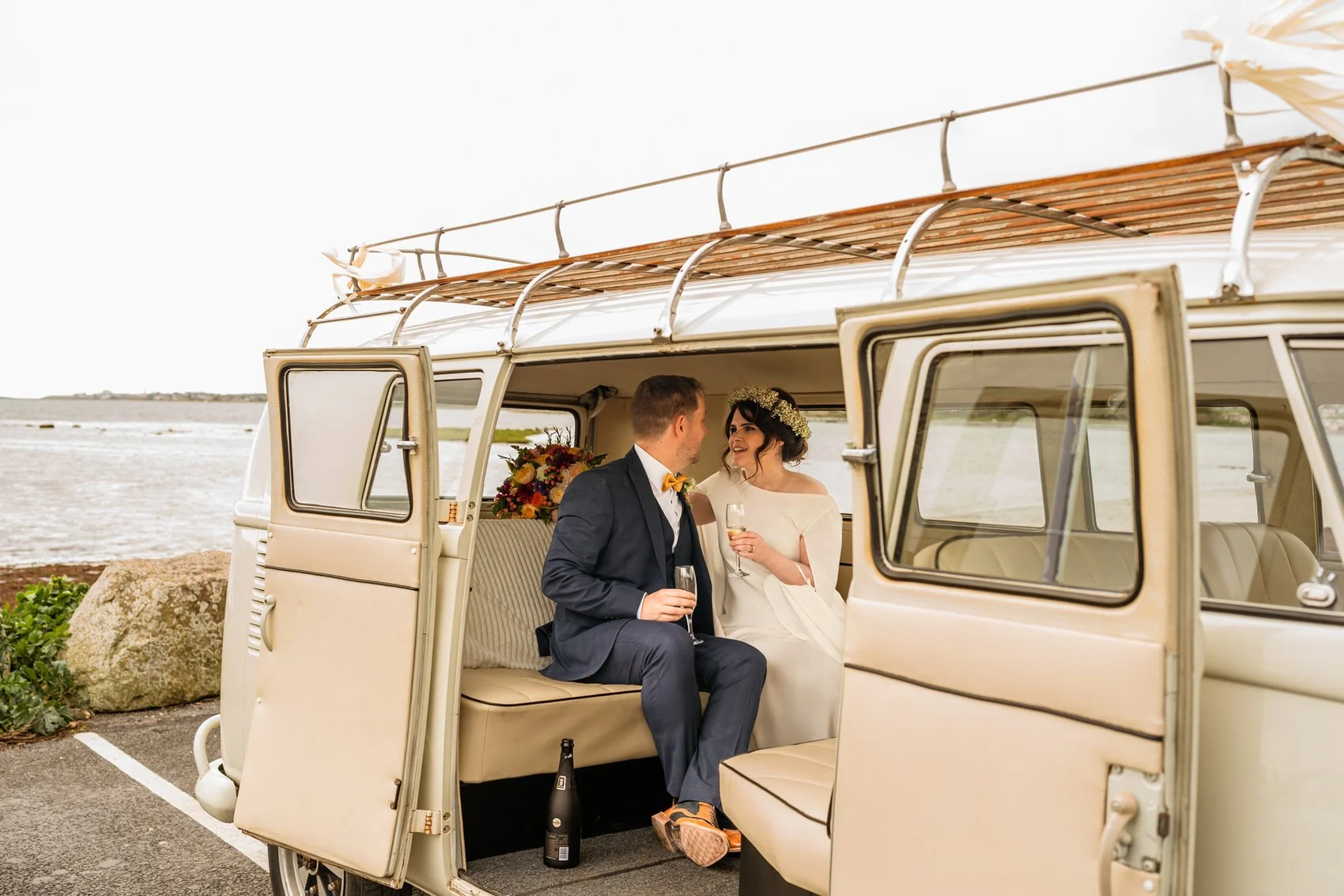 Niamh’s sister/maid of honour and mum both wore pale blue and looked so elegant. There were also three very sweet flower girls in rose gold. We got some great images of the bridal party before heading off to St Patrick’s Church for the wedding ceremony. With Niamh, her mum and dad and her sister travelling there is style in a gorgeous VW safari style campervan.