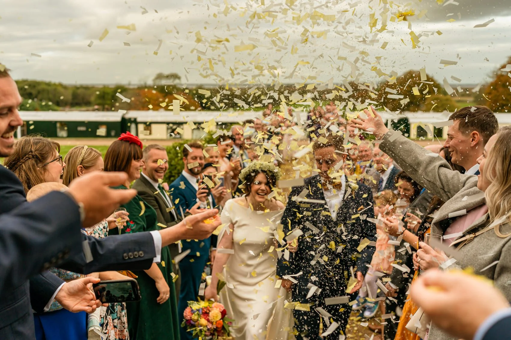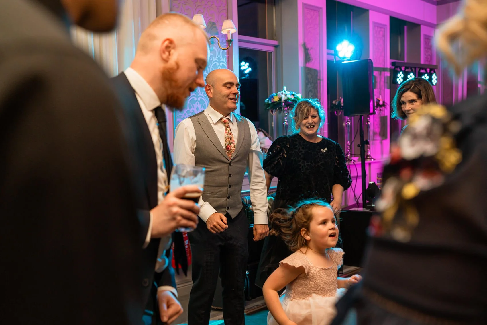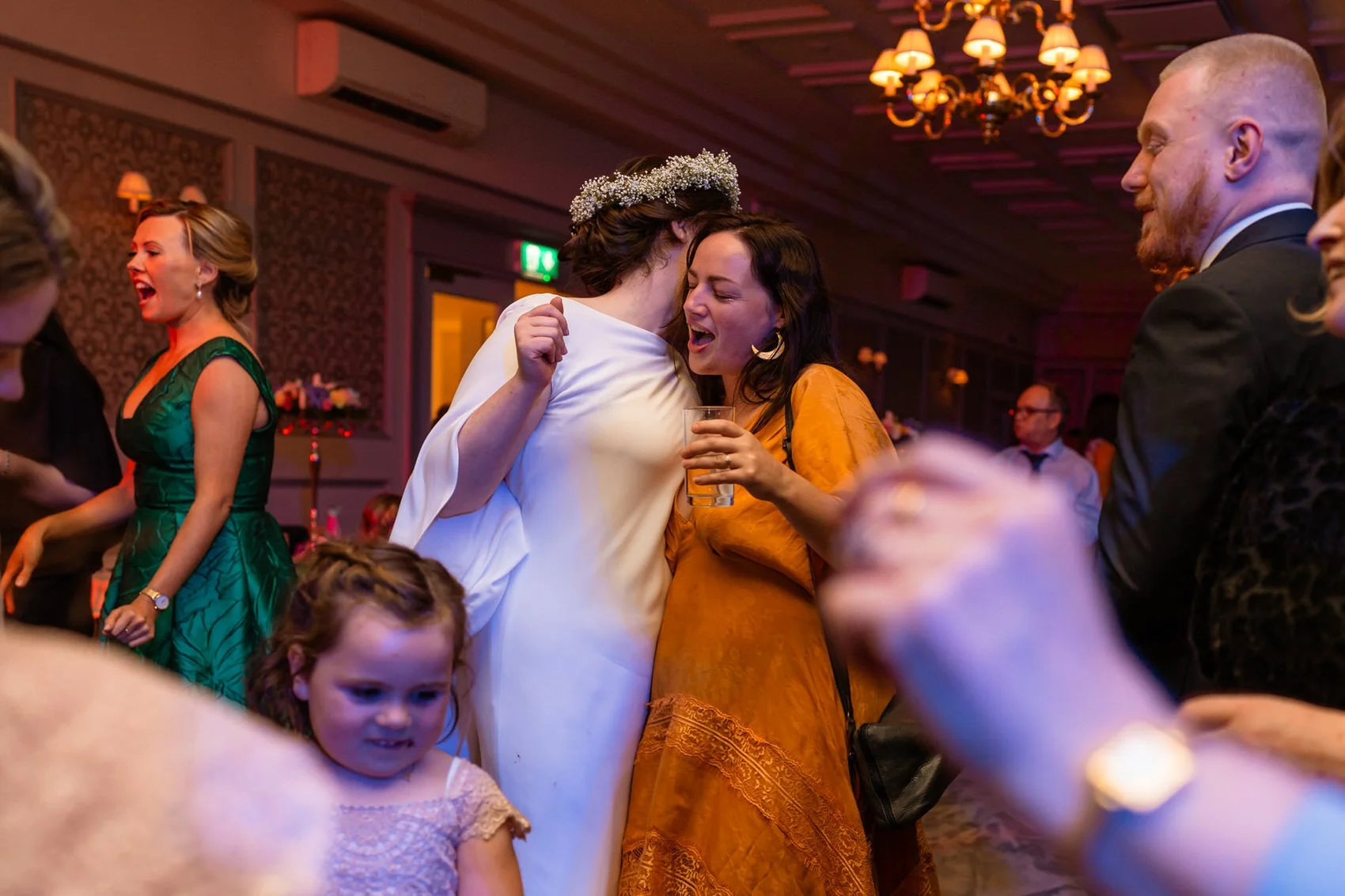 We then rejoined Niamh and Jon’s guests who’d been enjoying a drinks reception. They lined up at the entrance for a fun confetti moment using a confetti canon. There was a lot of confetti, which meant that the images were great, but just about everybody got covered in it, including the entire venue.