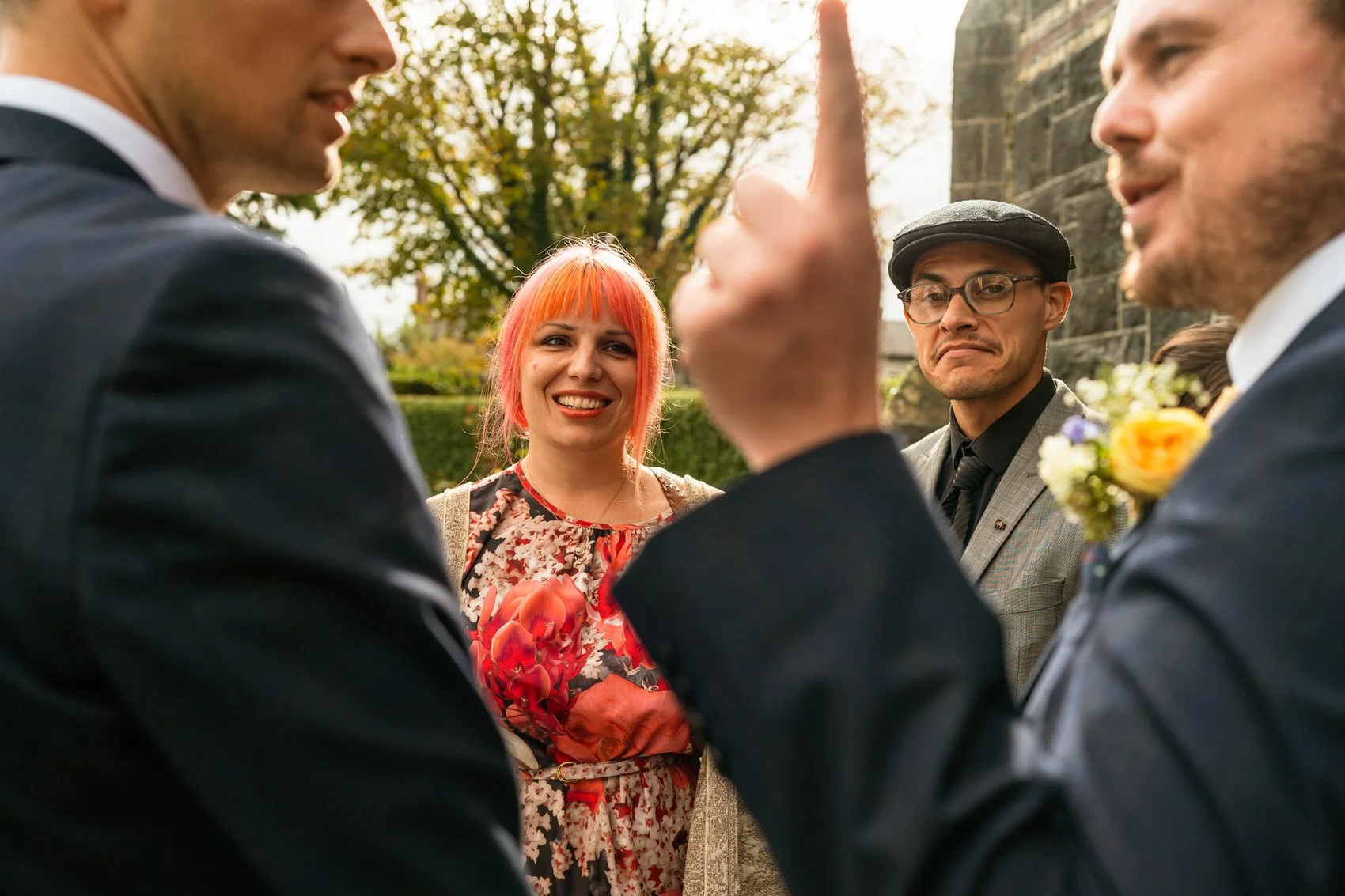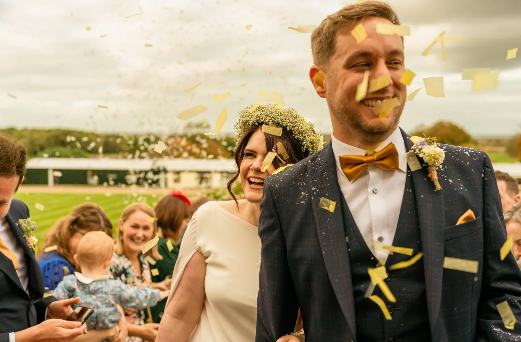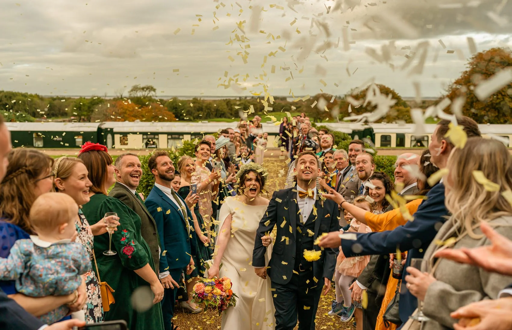 We then rejoined Niamh and Jon’s guests who’d been enjoying a drinks reception. They lined up at the entrance for a fun confetti moment using a confetti canon. There was a lot of confetti, which meant that the images were great, but just about everybody got covered in it, including the entire venue.