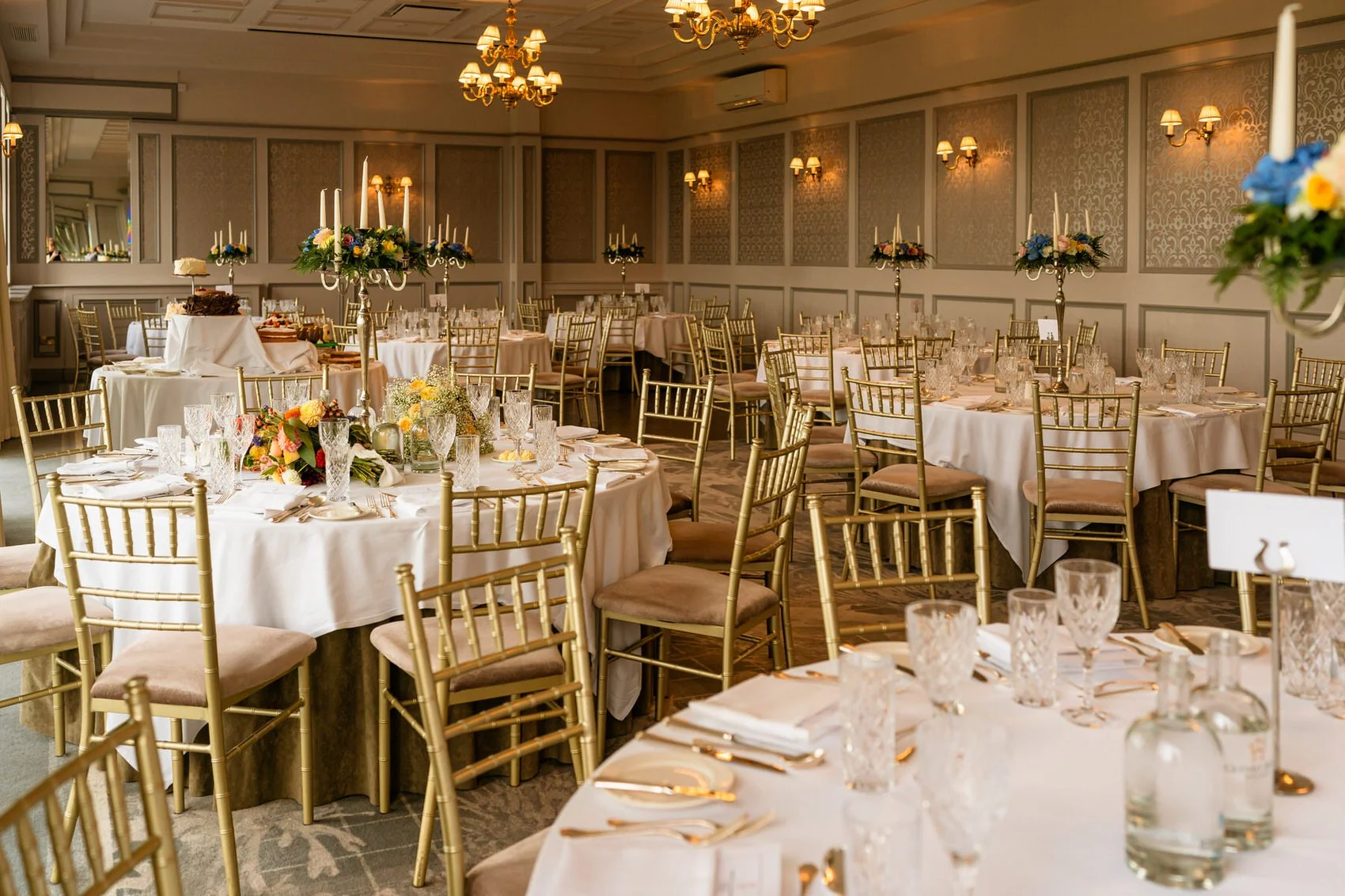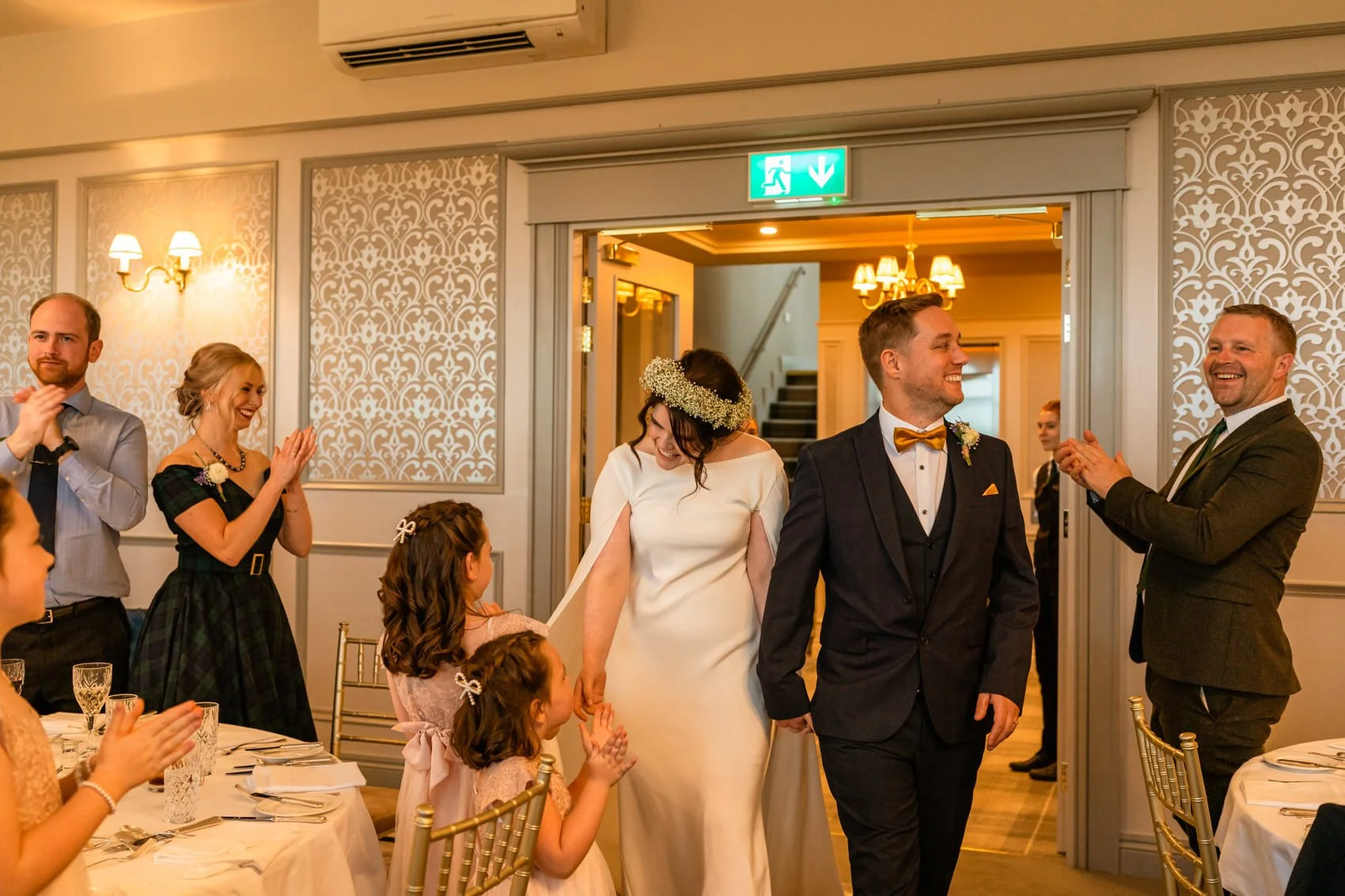 The wedding reception was held in The Corrib Room. This elegant suite has panoramic views overlooking the idyllic and serene Lough Corrib Lake below. The tables had been dressed beautifully with crisp white linen, floral arrangements and characterful candles on candelabras. Niamh and Jon were welcomed in to rapturous applause from their guests.