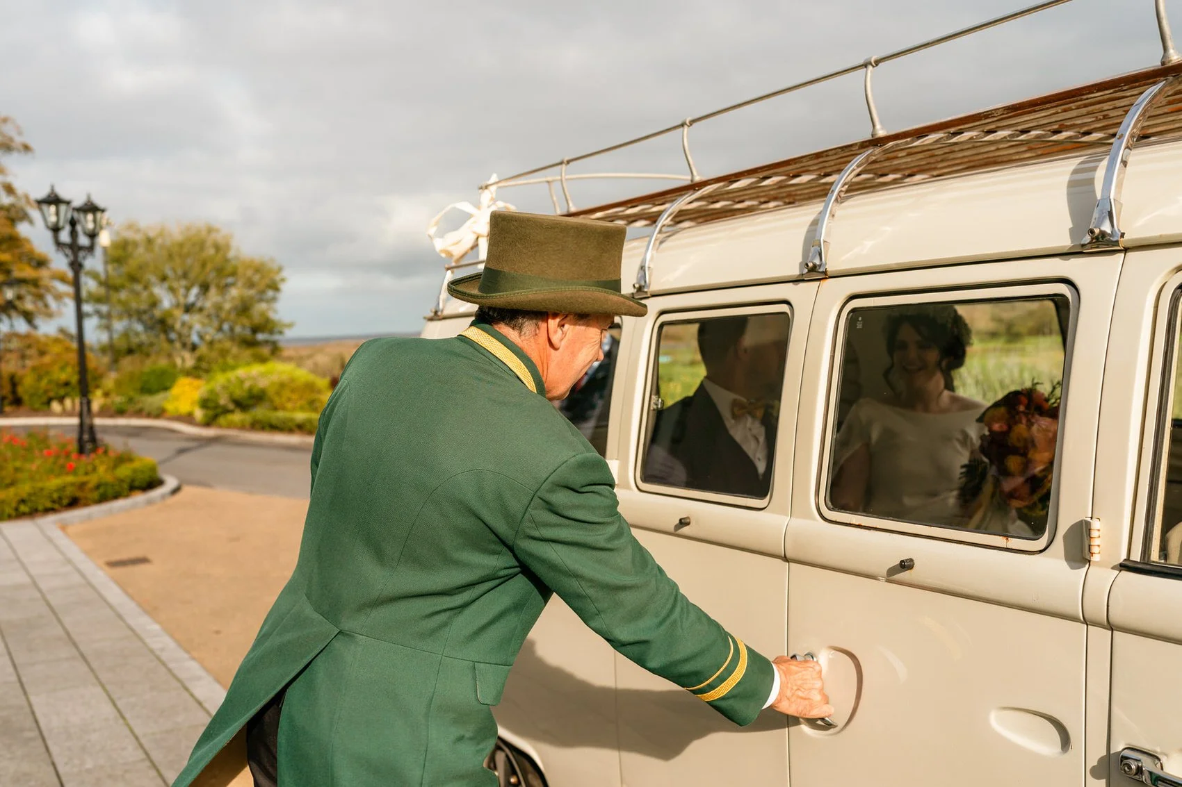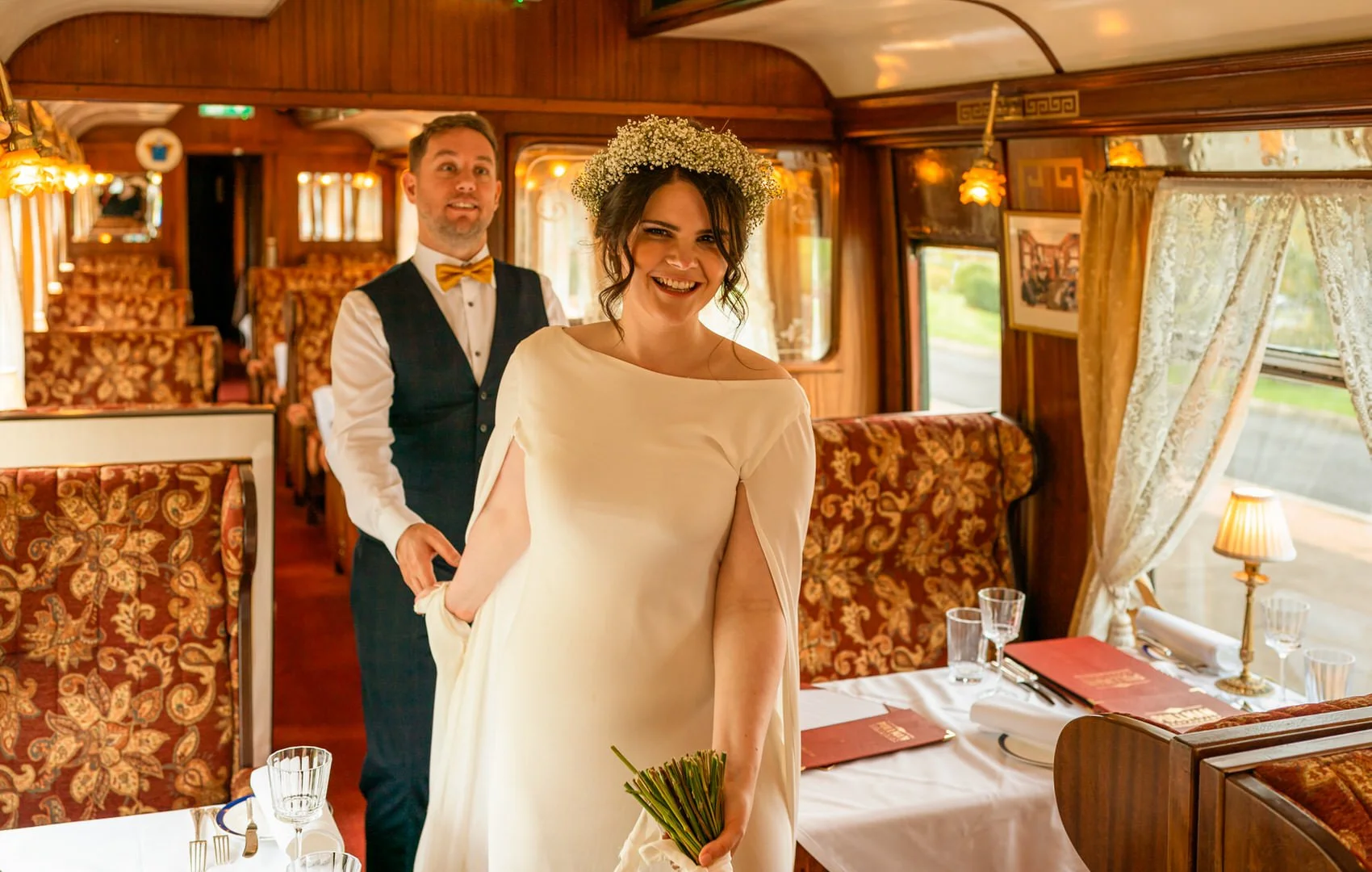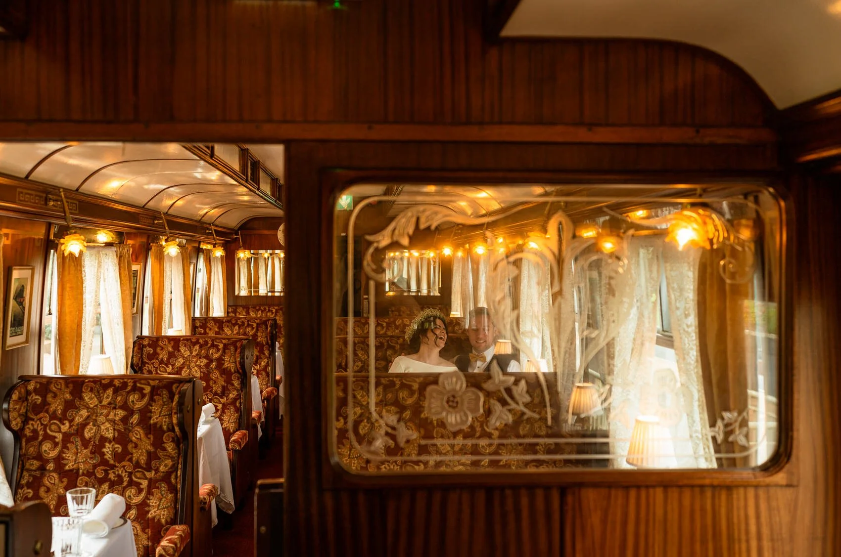 We then got back into the VW Campervan and headed to Glenlo Abbey Hotel to continue our photoshoot around their beautiful grounds and gardens. It is super duper fancy, I could get used to having all doors opened for me. Our photoshoot included a visit to The Pullman Restaurant, an award-winning restaurant which compromises of two of the original carriages from the Orient Express. Beautifully restored, they sit within the grounds of the hotel, and made for some truly unique wedding photos.