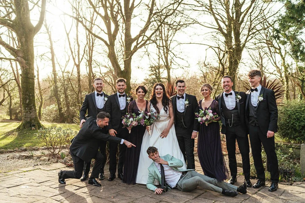 The elegance extended to ever member of the wedding party. The groom and groomsmen, were all sporting black tuxedos from Dyfed menswear, the bridesmaids wore a deep purple and Rebecca, the bride, stunned in a classic but beautifully backless dress from Eva Ashley in Swansea. Although, when it came to the wedding car, instead of squishing all the layers of the dress inside, she opted to arrive in the back of her Dad’s van. A practical choice considering it had MUCH more space & a case of cider incase she got thirsty on the journey from Mulberry House.