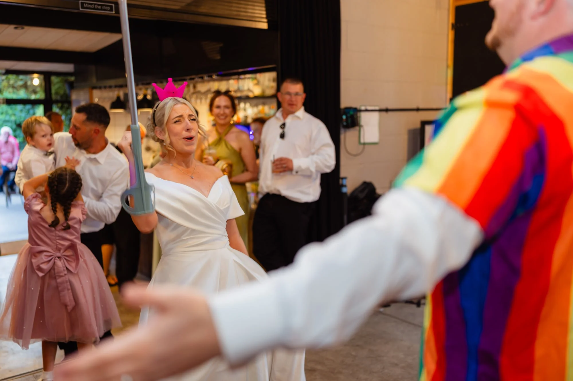 He placed the tiara back on Shona’s head, handed her the crutch, and they danced away together like that. Funny, sweet and completely them. One of those moments that perfectly sums up why personal stories matter so much on a wedding day.