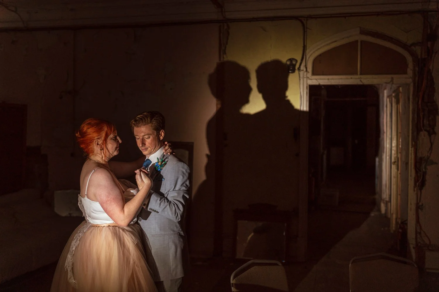 That mix of history, mystery, and romance made for the perfect wedding photography setting. We got creative with the castle’s darker corners, using the dusty, cobwebbed rooms to add a touch of haunted elegance to Mel & Liam’s wedding photos.
