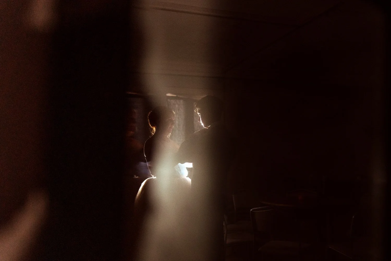The excitement built as we set up for some unique shots in the abandoned areas of the castle. Imagine a dark, shadowy corridor, with just a single beam of light illuminating the newlyweds. The atmosphere? Pure gothic romance.