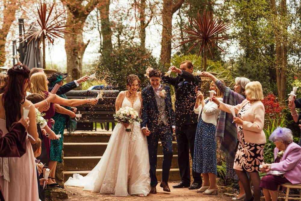 Charlotte and Georgi had 1kg going spare after we’d had it thrown at them post ceremony, and then after a few drinks later in the afternoon, they threw it at each other too. The stream and bridge at Fairyhill were covered too, but as always, it was biodegradable, bird friendly, confetti - our consciences are clear!