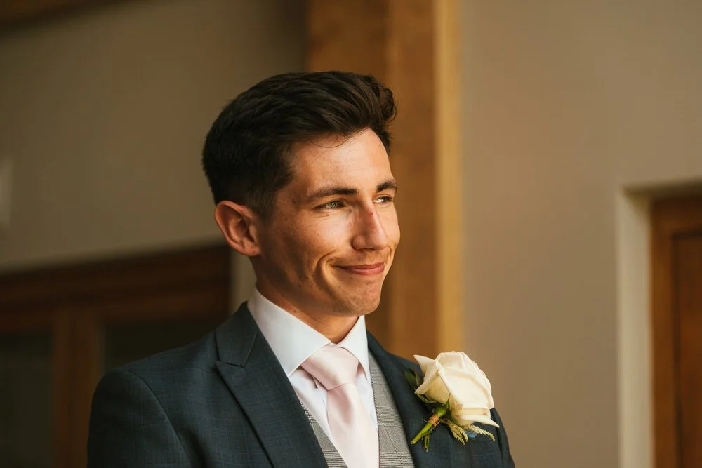 On arrival, we caught up with Alex and his grooms party who all looked very smart in petrol blue three-piece suits with brown brogues.