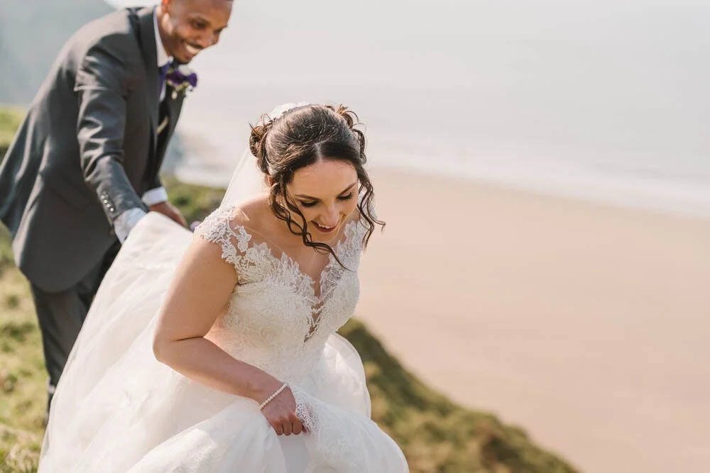 On the days itself, when all the confetti had been thrown, we headed off for their couples video and photos at Rhossili, looking over towards Worm’s head. It seemed every tourist in Swansea had the same idea, apparently we had quite the crowd forming walking across the Gower headland in full wedding dress! All worth it for the spectacular landscape.