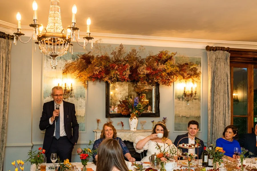 The wedding breakfast was in Parc Le Breos’ charming dining room. This atmospheric room is abundant with period features and had been dressed beautifully. Charlotte and Alex were welcomed to their table rapturously by their guests. There followed a delicious wedding breakfast curated by Parc Le Breos’ talented team of in-house chefs in conjunction with Charlotte and Alex. Seriously, the food looked amazing!
