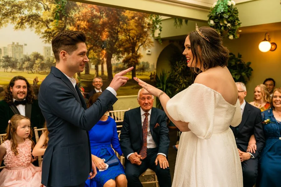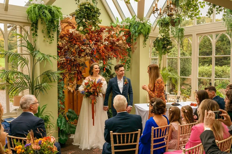 The wedding ceremony was held in Parc Le Breos’s light and airy conservatory, guest chairs were arranged to create a natural aisle and Charlotte and Alex said their vows in front of a beautiful arch of flowers with the door open to show views of the stunning garden beyond. It was an idyllic setting for a wedding ceremony and having it bathed in tons of natural light, made it even easier to capture gorgeous wedding photography and film. As South Wales wedding photographers, we are total geeks when it comes to light.