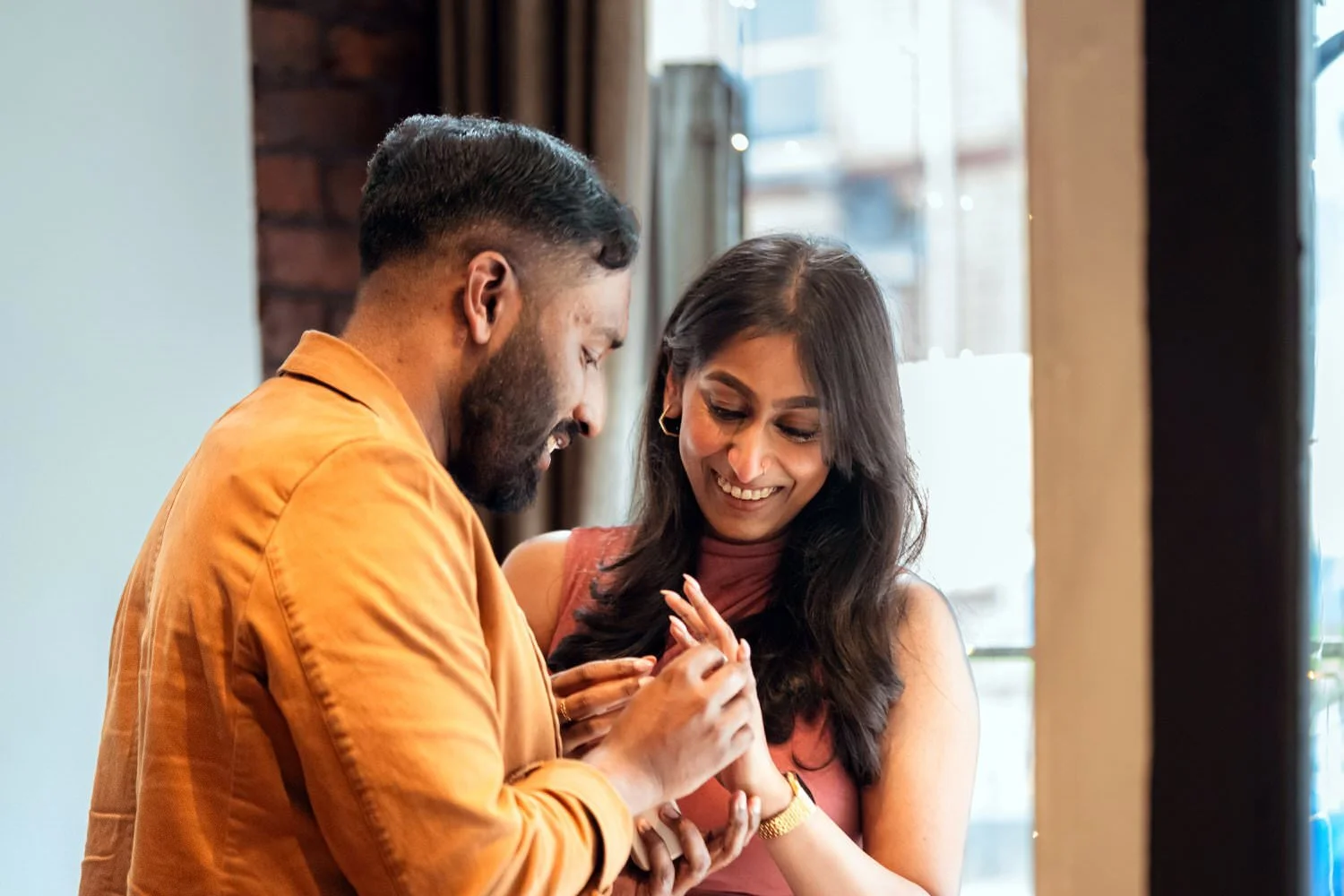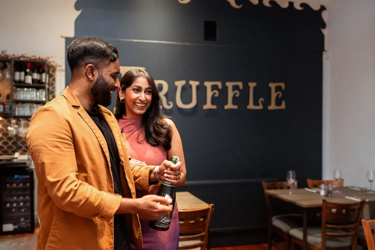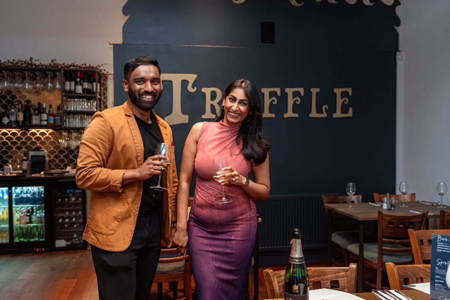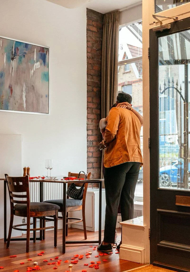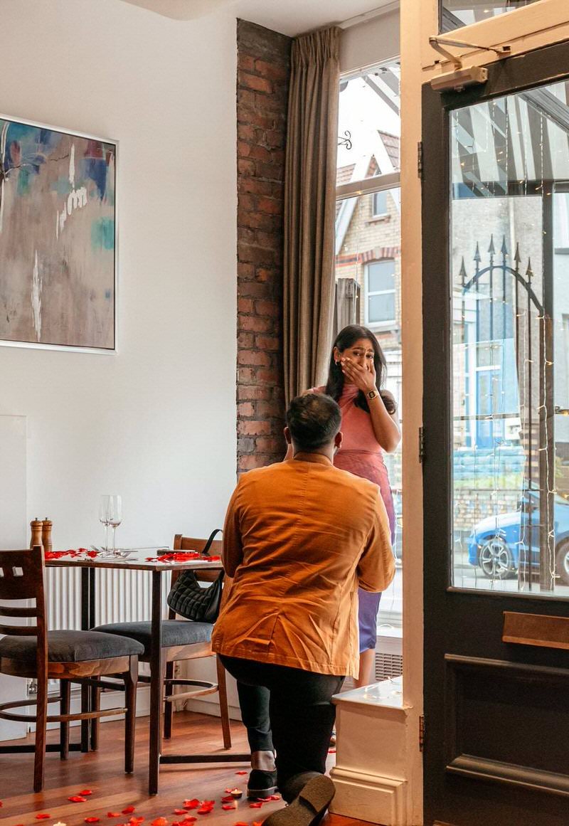Menan and Meenu’s love story took a beautiful turn with a surprise proposal at Truffles Restaurant, Swansea—the very spot where they had their first date.
