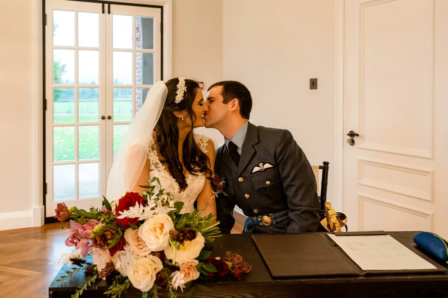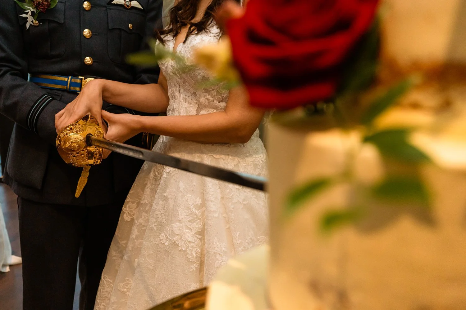 After using a RAF sword to slice into their three tier cake from Cakes Especially By Jennifer Leeb, a standout moment was their first dance, set to the tune of a Lady Gaga track from Top Gun: Maverick. The choice of song, with its subtle nod to the Navy aviator played by Tom Cruise in the film, added a touch of irony and charm to the dance.