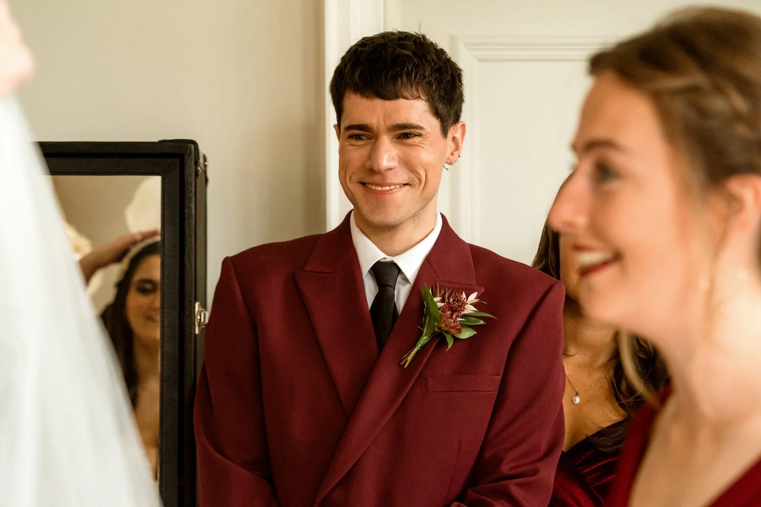 We loved the idea of the wedding party all in matching colours but with a variation between dresses, suits, fabrics and even a jump-suit.