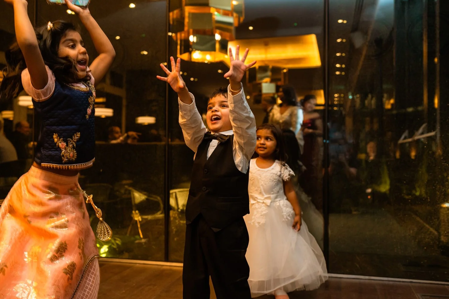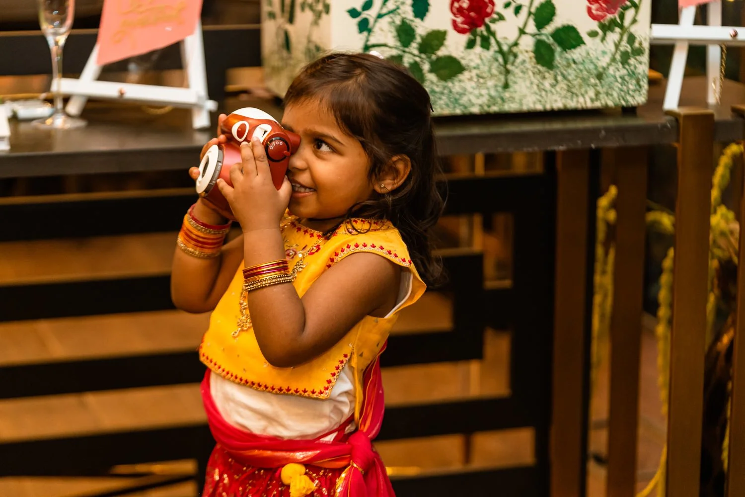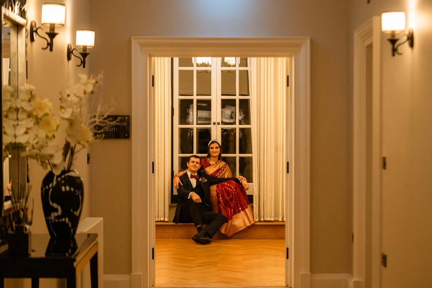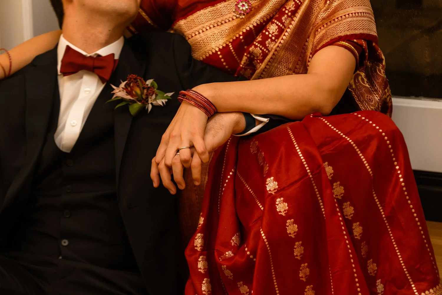 Samantha surprised guests by changing into a gorgeous Indian Sari to honor her relatives in India. The vibrant colors and intricate details of the ensemble, combined with the presence of aunties in layers of silk and bangles, brought a festive atmosphere to the event and an ease to photograph.