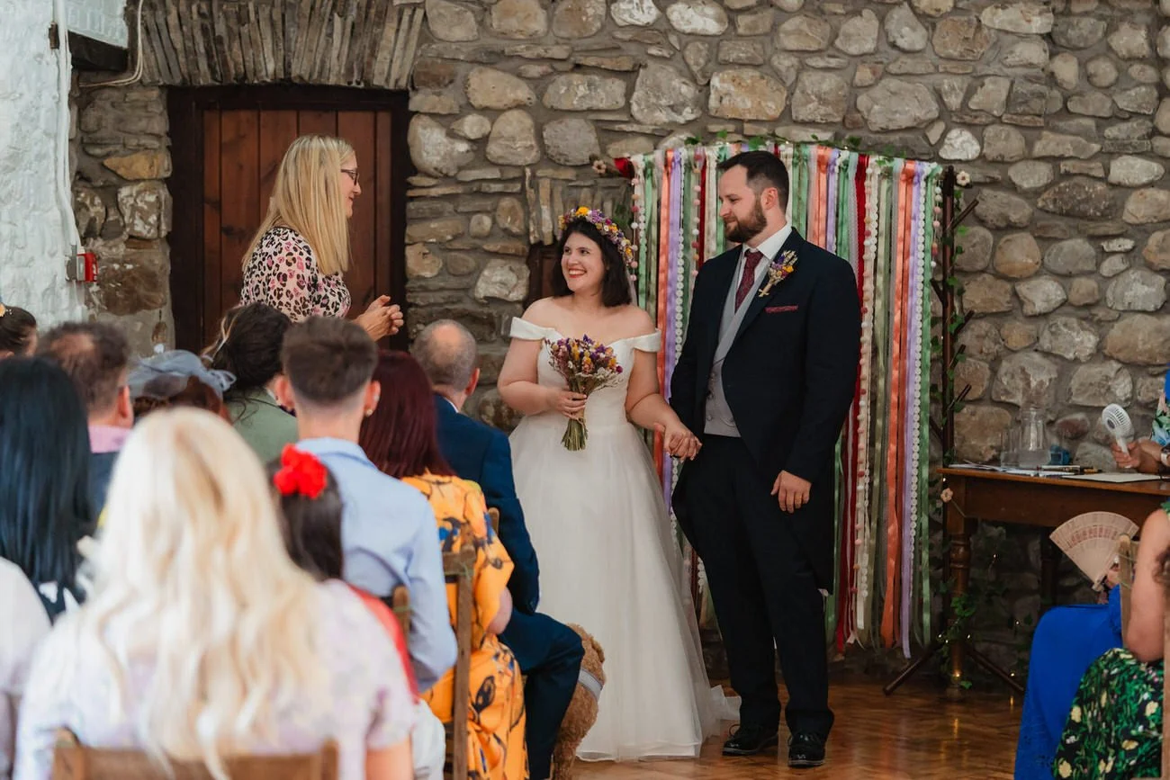 Catering was provided by The Observatory, flowers by Florence and Flowers, the dress from White Orchid Bridal with tailoring by Lisa’s Sewing Bee, and the suit from Dyfed Menswear. Favours were lovingly created by Aunt Emma Heaven, adding another layer of family involvement to a day already full of it.