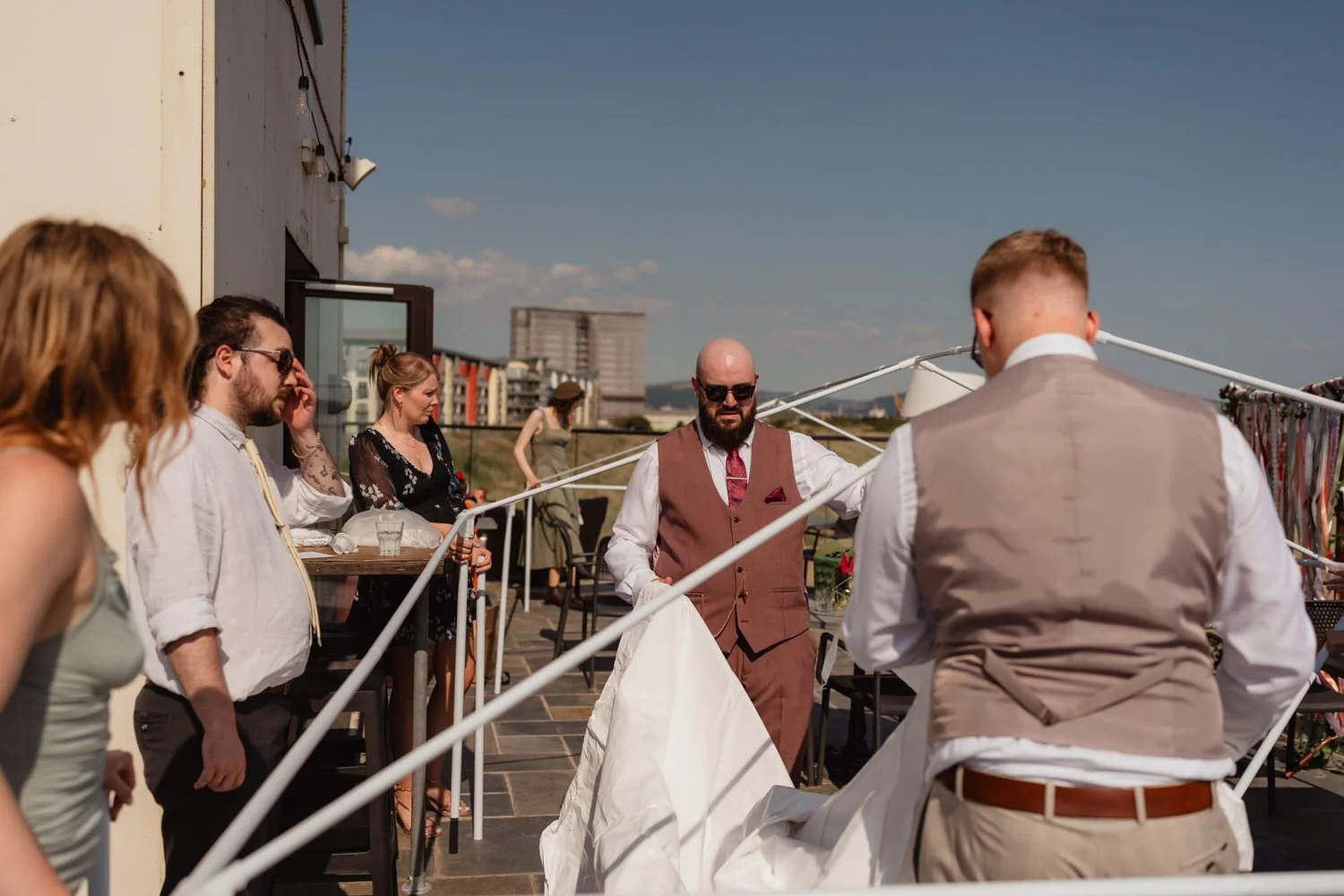 The reception at The Observatory in the Marine Quarter brought everything together. Sitting directly over Swansea Bay, it gave guests space to relax on the terrace with champagne, taking in the views and cooling down slightly as the day rolled on.