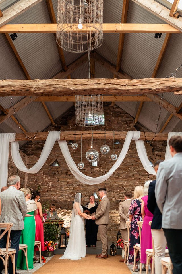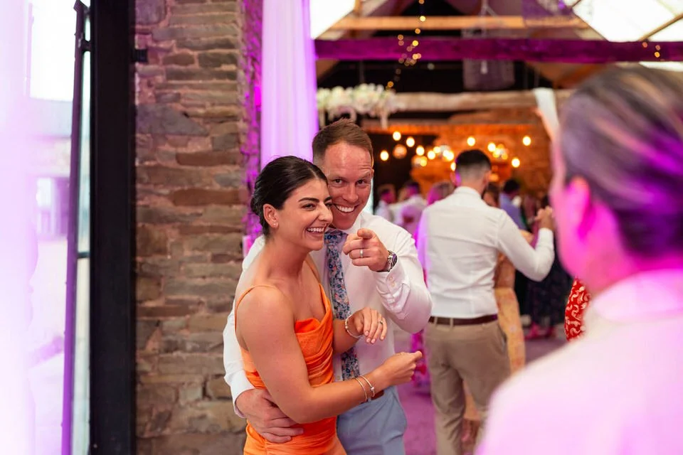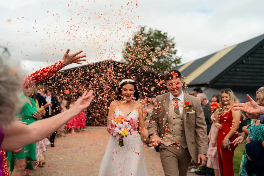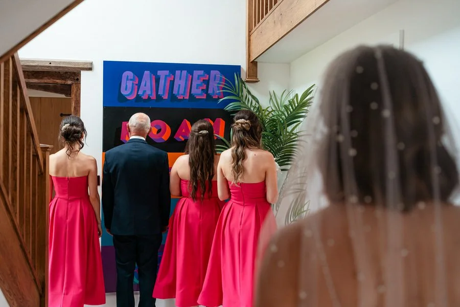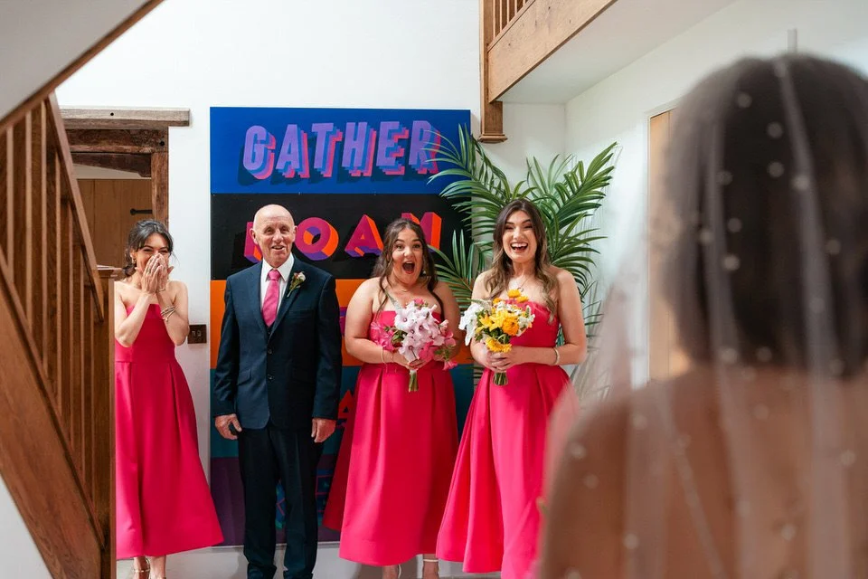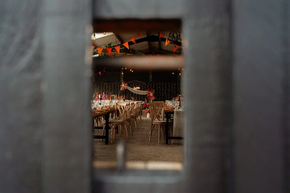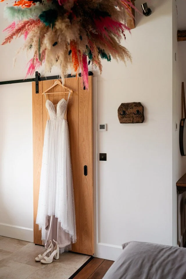 The barn was transformed into a colorful wonderland! From vibrant wildflowers and hand-dyed pampas grasses to charming bunting in bold pinks and oranges, every detail was a nod to the couple’s fun-loving personalities. It was all about creating a warm, welcoming atmosphere, and the decor definitely delivered. The feasting-style dining setup created by Epic Caterers was an absolute hit, allowing guests to indulge in delicious dishes while enjoying the lively and relaxed vibe of the day.