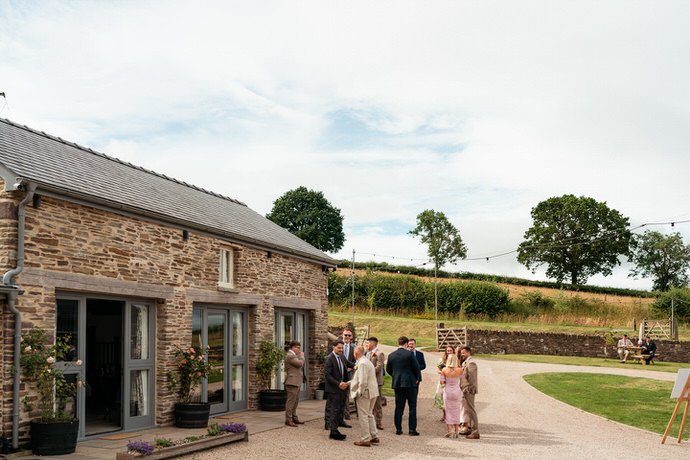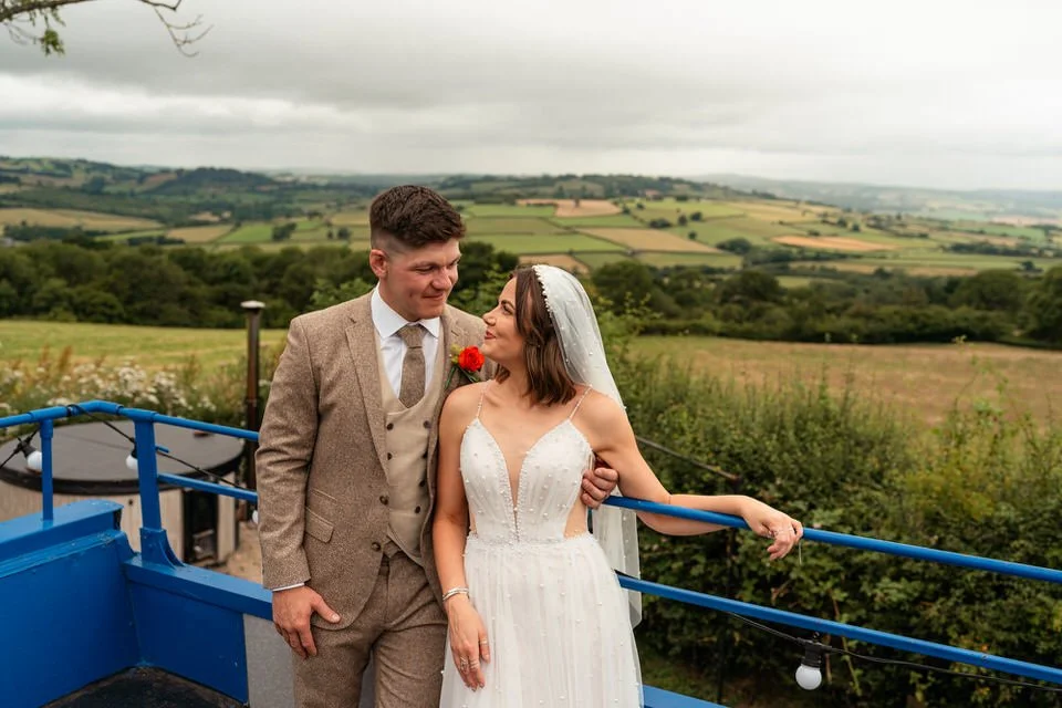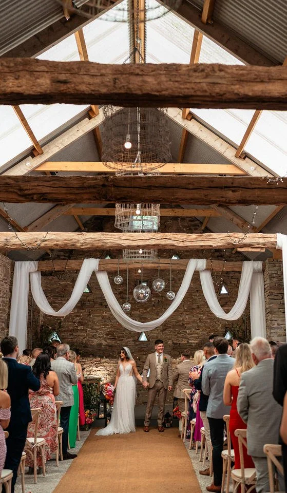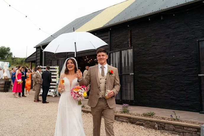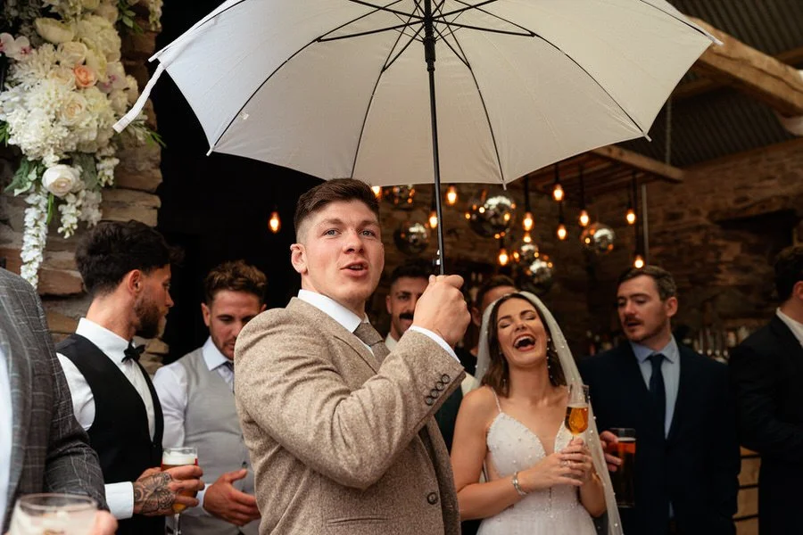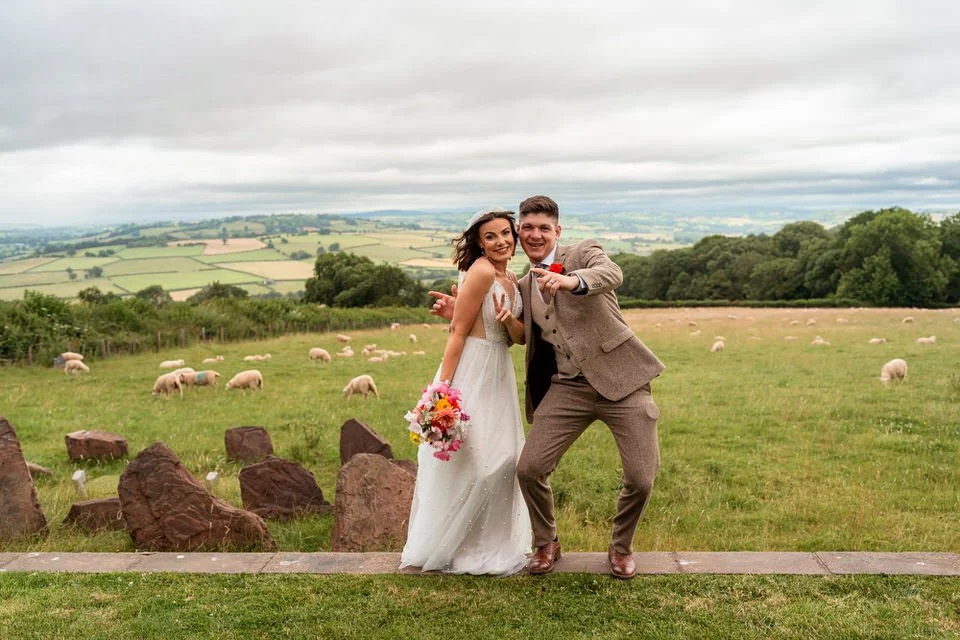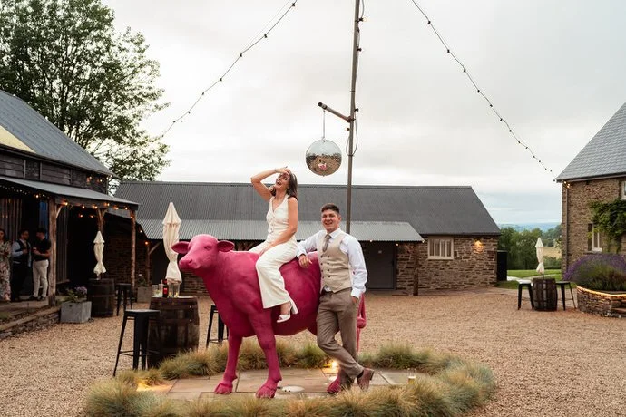 One of the highlights for us was the “A Whole Lot of Love” mural on the barn’s wall. Not only was it a beautiful focal point, but it also tied in perfectly with the couple’s venue name! Plus, the breathtaking views over Brecon’s hills and the farm’s sheep-filled fields created the perfect backdrop for the couple’s wedding photos and videos.