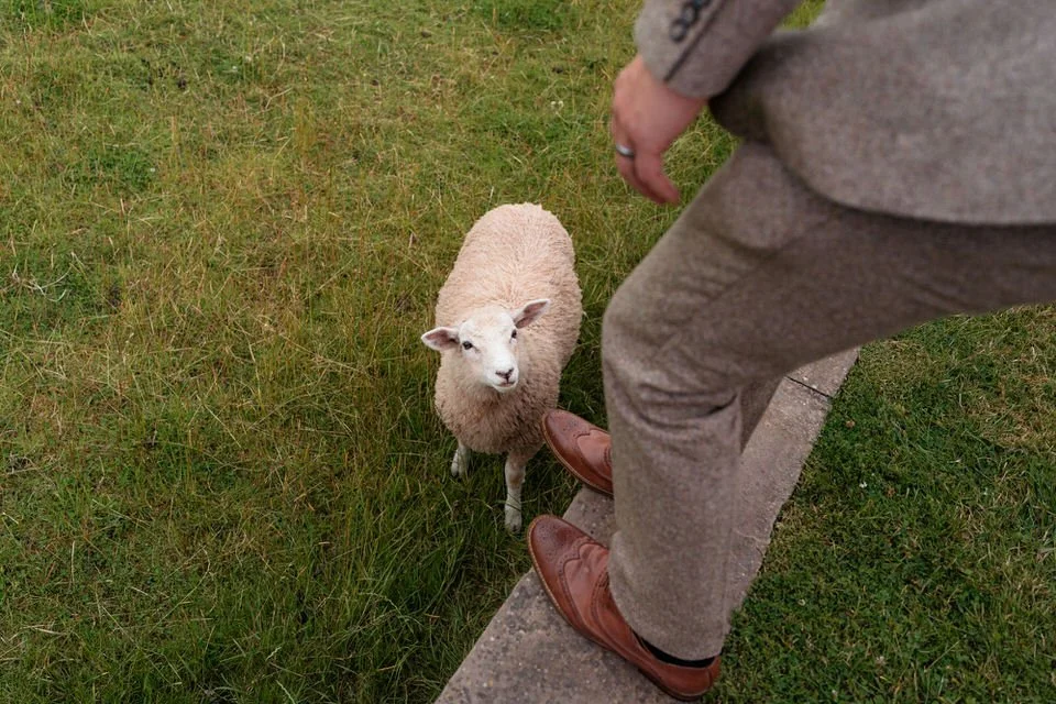 Speaking of sheep, let’s not forget Gary, the ultimate wedding party crasher! As we were capturing group shots, Gary decided to make an appearance, adding even more personality to an already unique celebration. The funniest part? The bride’s dad is also named Gary, so this surprise guest was met with plenty of laughs. And of course he made the wedding gallery.