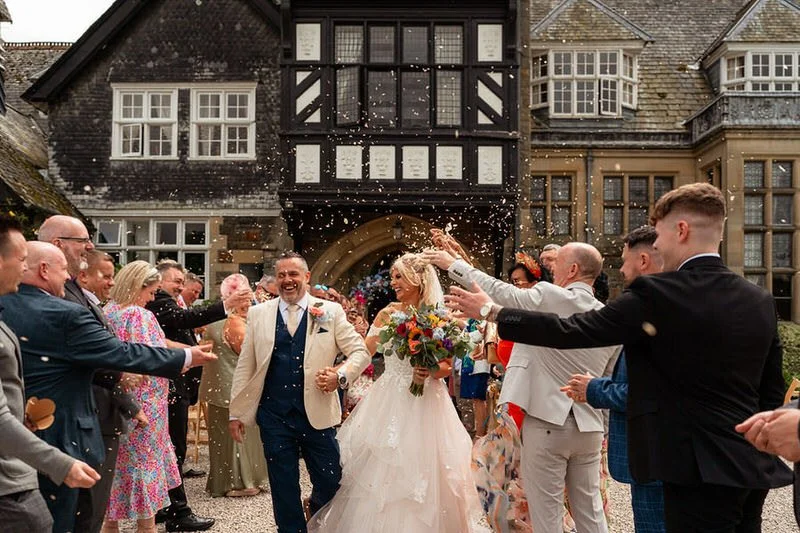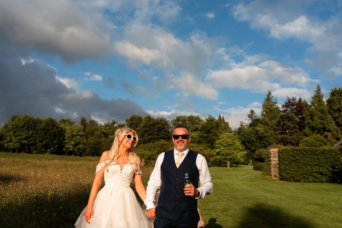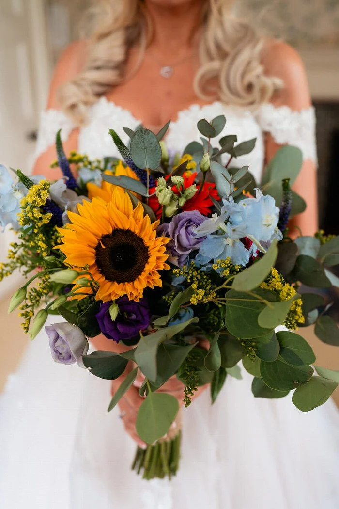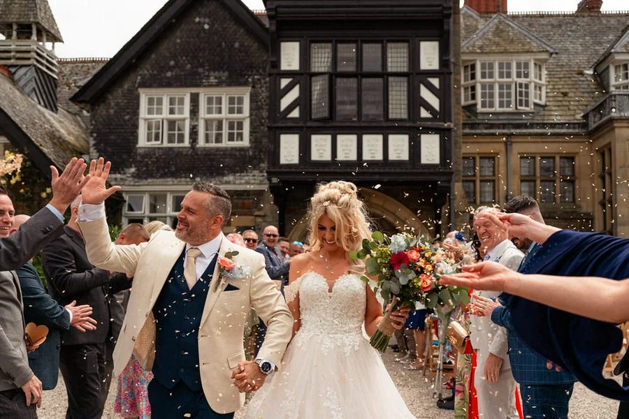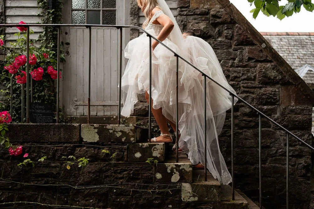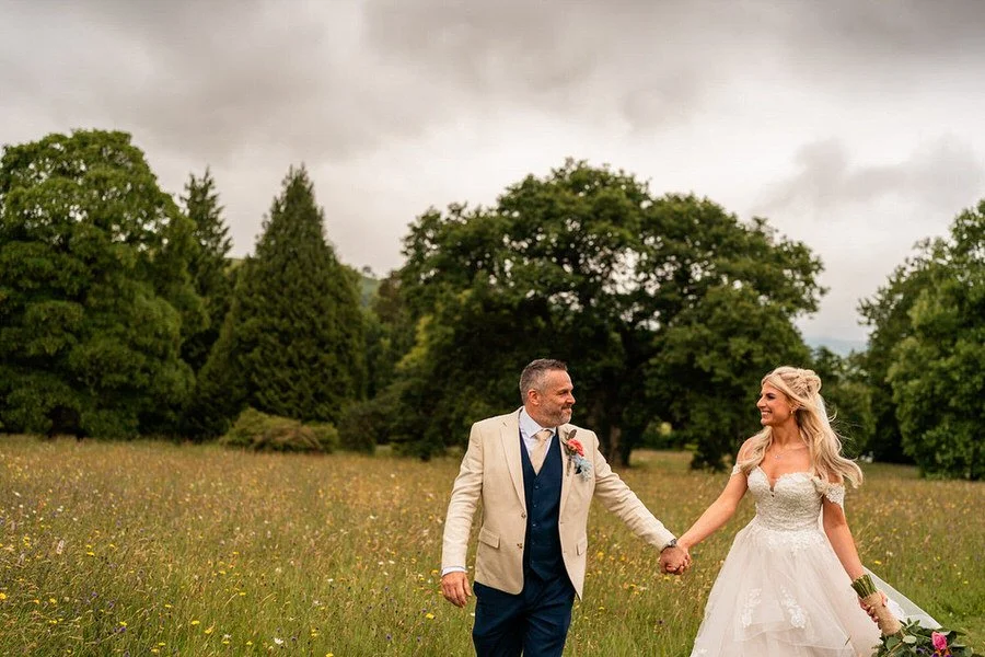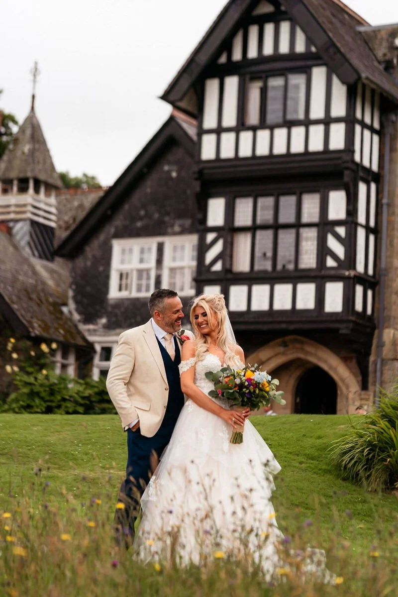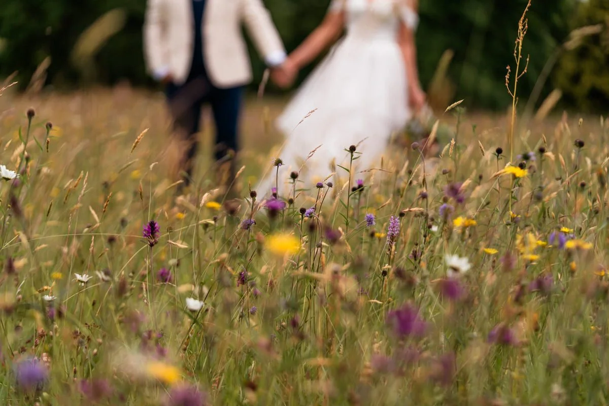With fields of vibrant wildflowers and framed by rolling hills, the beautiful venue perfectly matches the relaxed vibes associated with an outdoor ceremony. Although the final decision on whether to hold the vows inside or outside was anxiously left until the very last minute due to persistent showers, the couple ultimately achieved their dream of marrying with the country house serving as their backdrop.