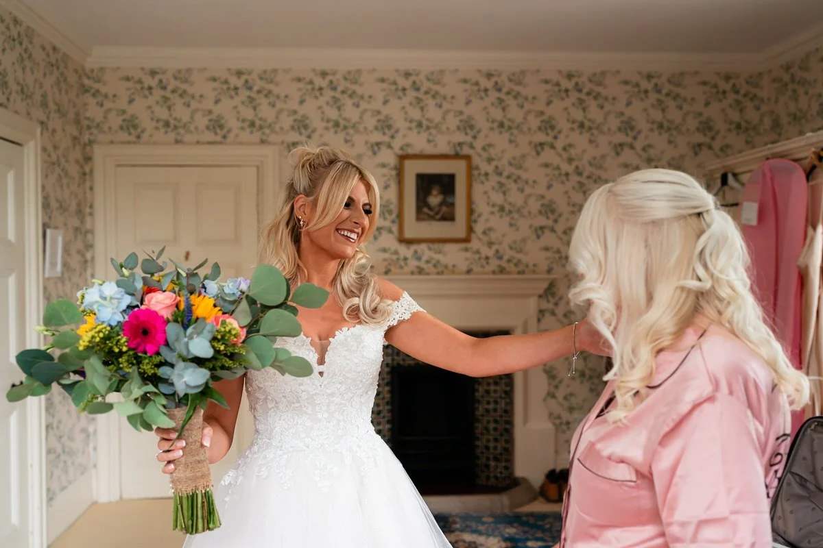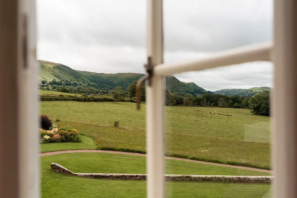 We traveled along the scenic winding roads to Mid Wales, arriving at the stunning grounds of Plas Dinam country house for the wedding day of Stacey & Jeremy. They’d booked the full duo prep until party package with videography, photography and drone footage. The long tree lined driveway leads past the converted stables, now a fantastic glass-roofed reception room offering the unique experience of feeling as though the outside has been seamlessly integrated into the indoors.