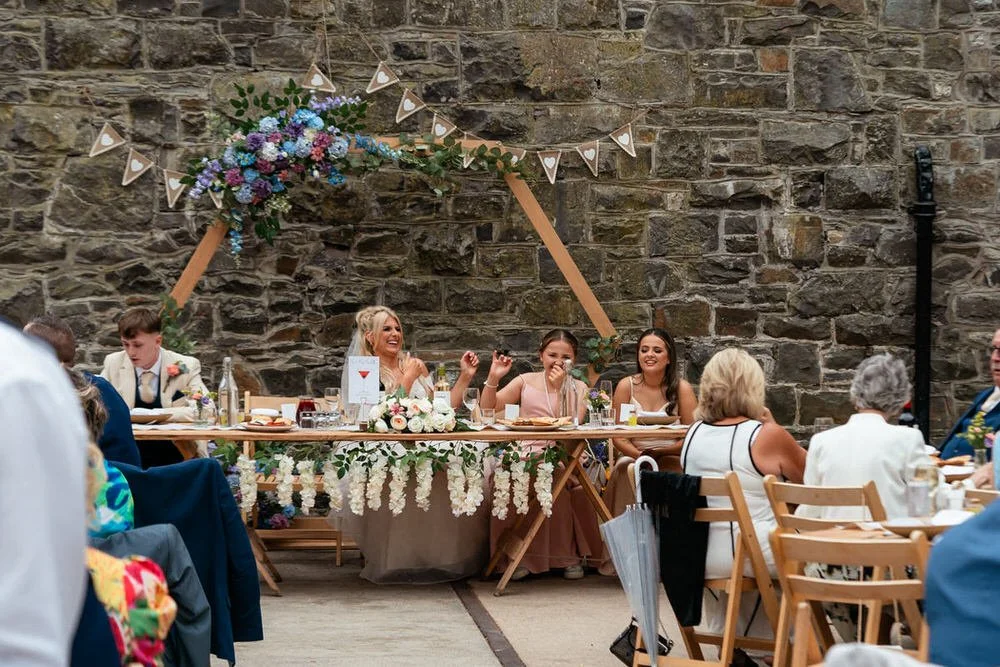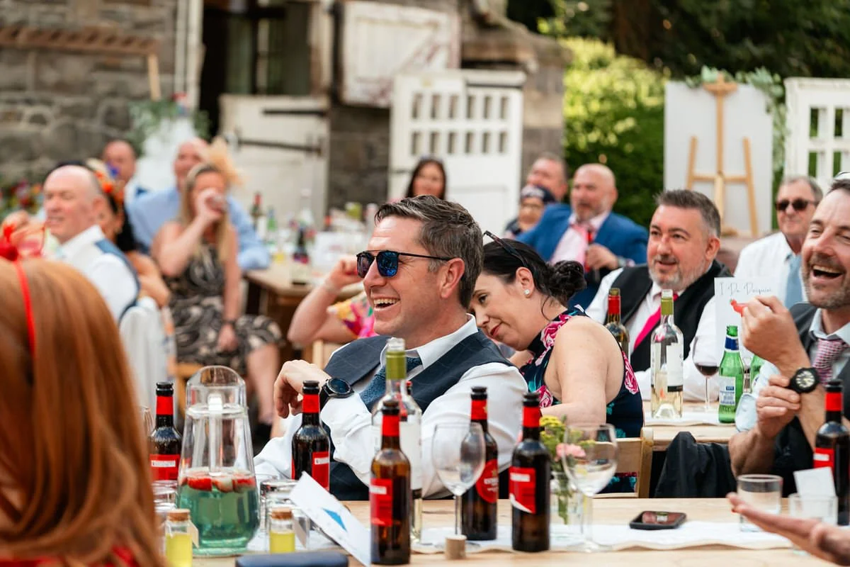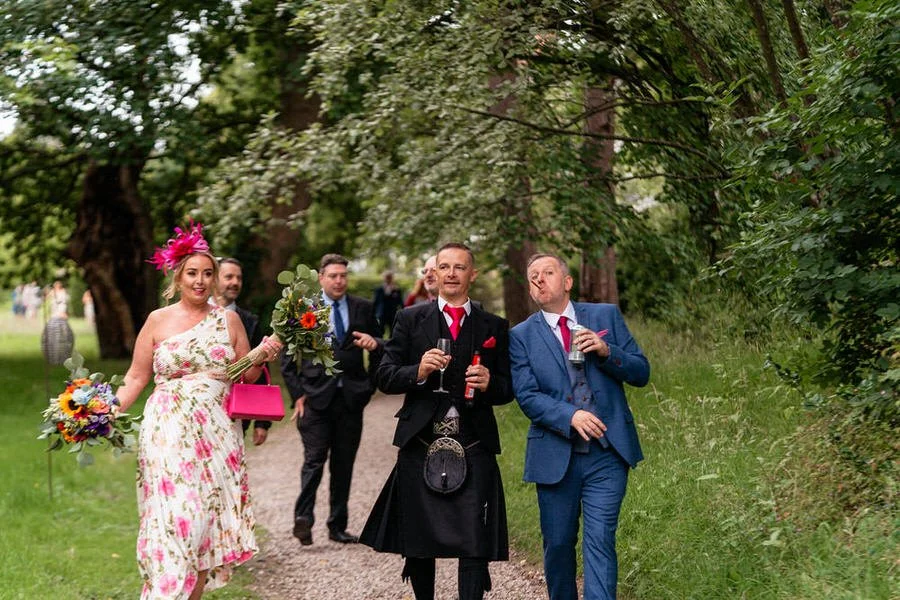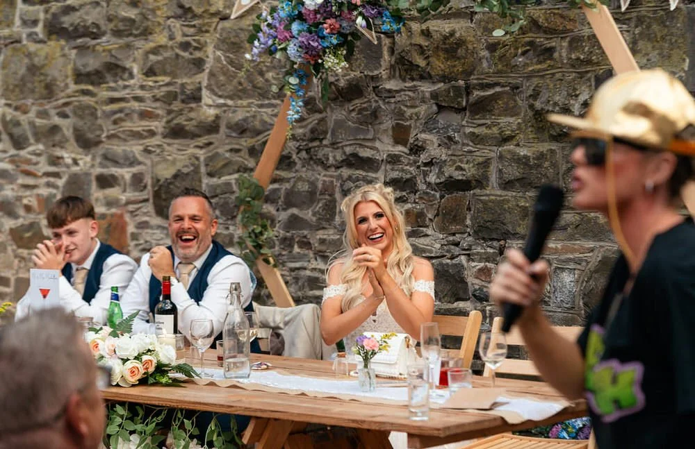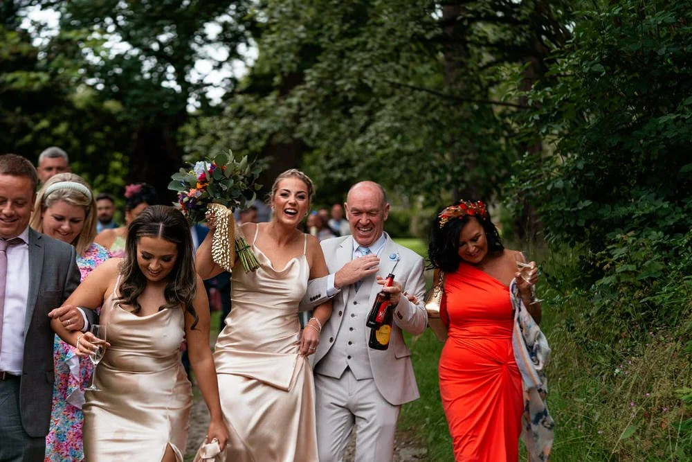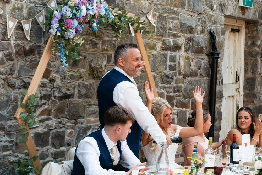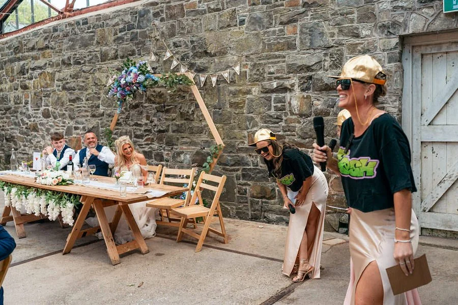 Our journey with the couple began at their best friends' destination wedding in France, where we first met. Five years later, we were delighted to reunite with Cath & Rich, taking on new roles as maid of honour and best man at another wedding celebration. After some very lively speeches, featuring a surprise rap which you can enjoy in the wedding highlights video below, the evening festivities commenced with lively music provided by the live band Indie National.