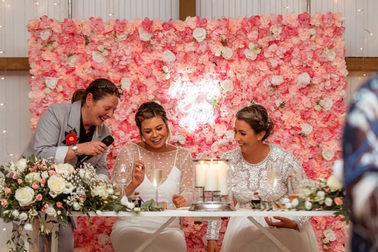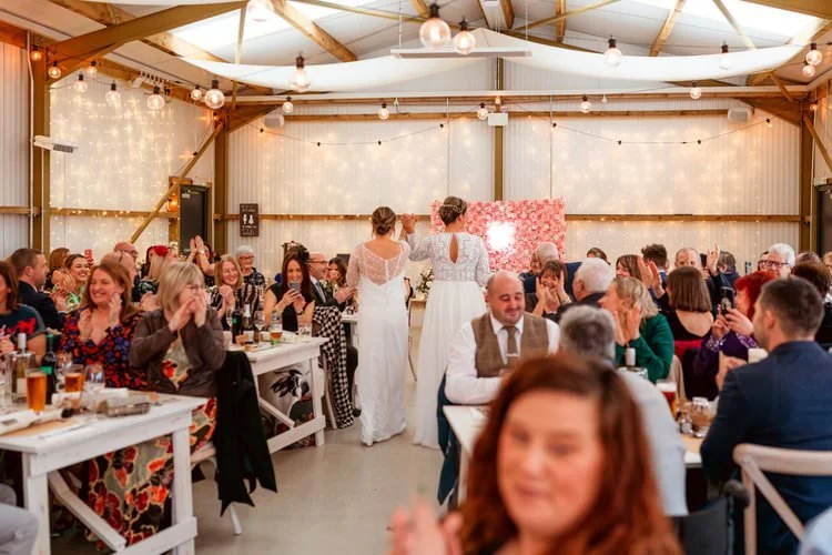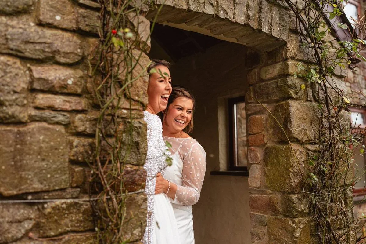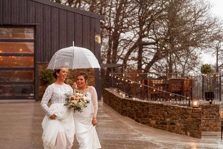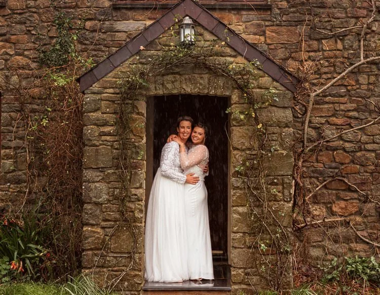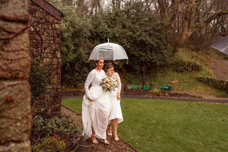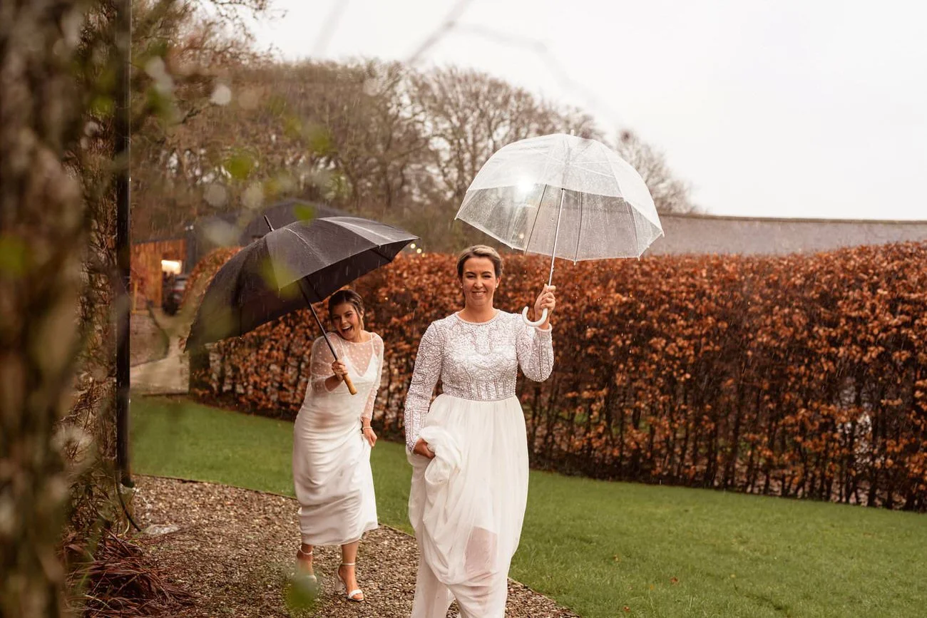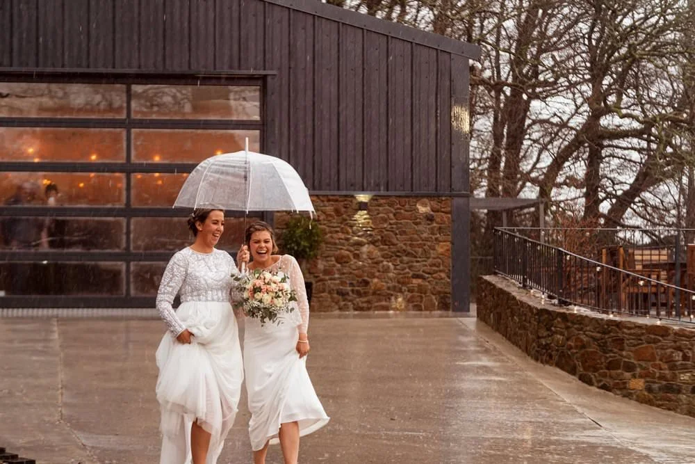 West Regwm Farm played host to the wedding of these two crazy cats, Laura & Chloe, on a VERY rainy day. An LGBT wedding with an LGBT wedding photographer.