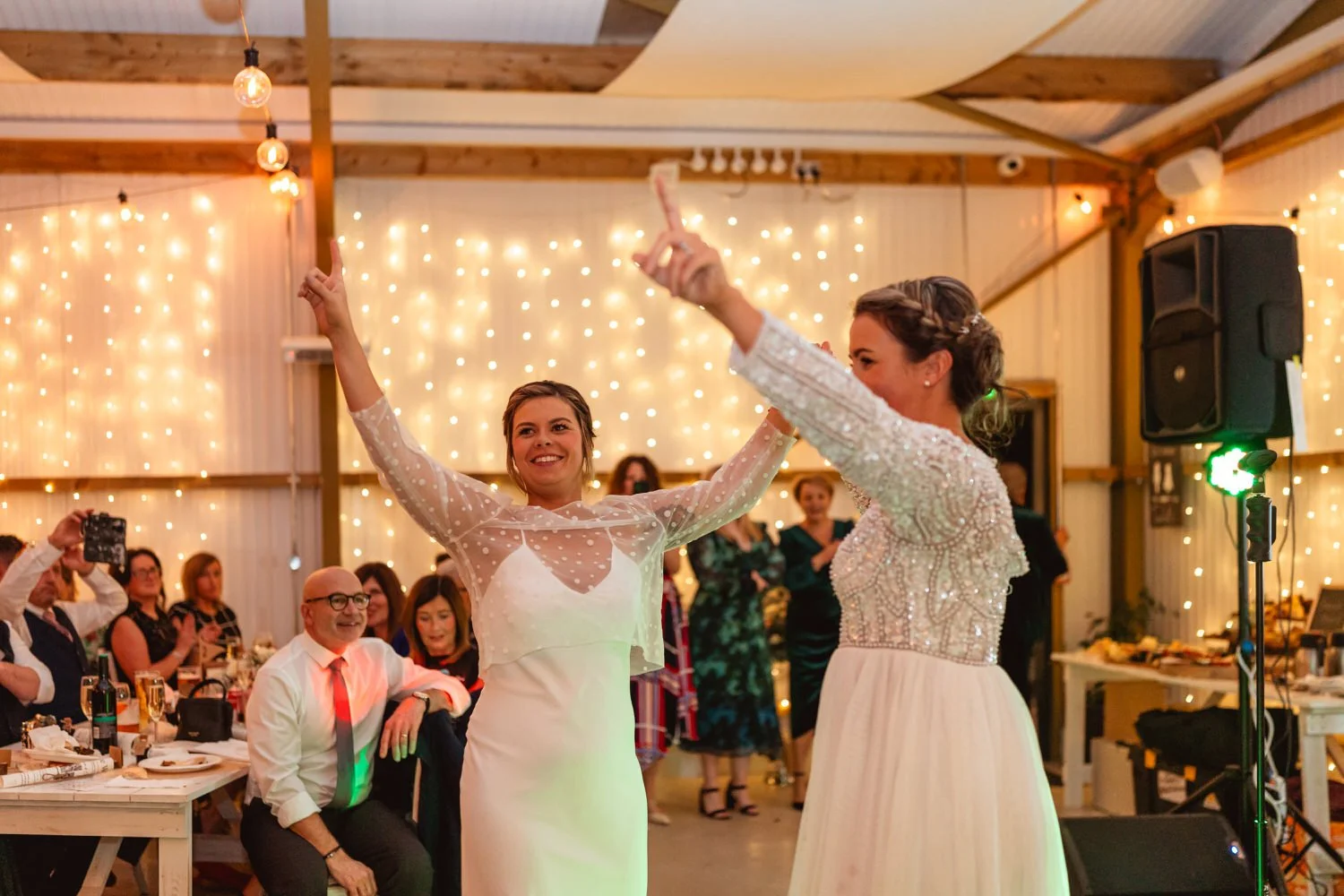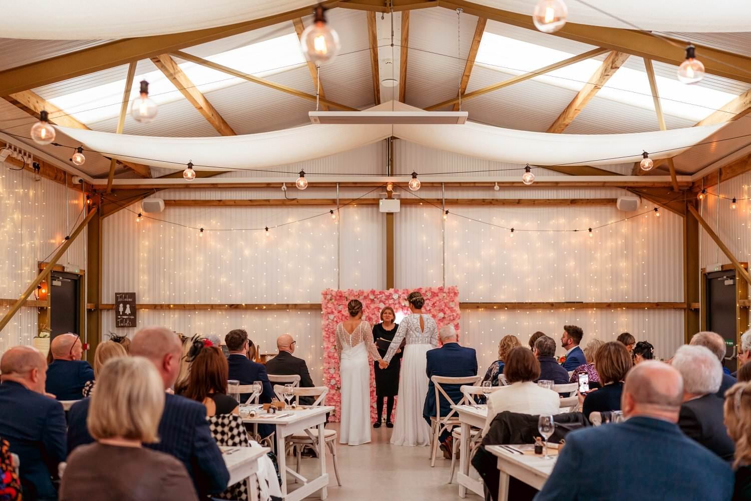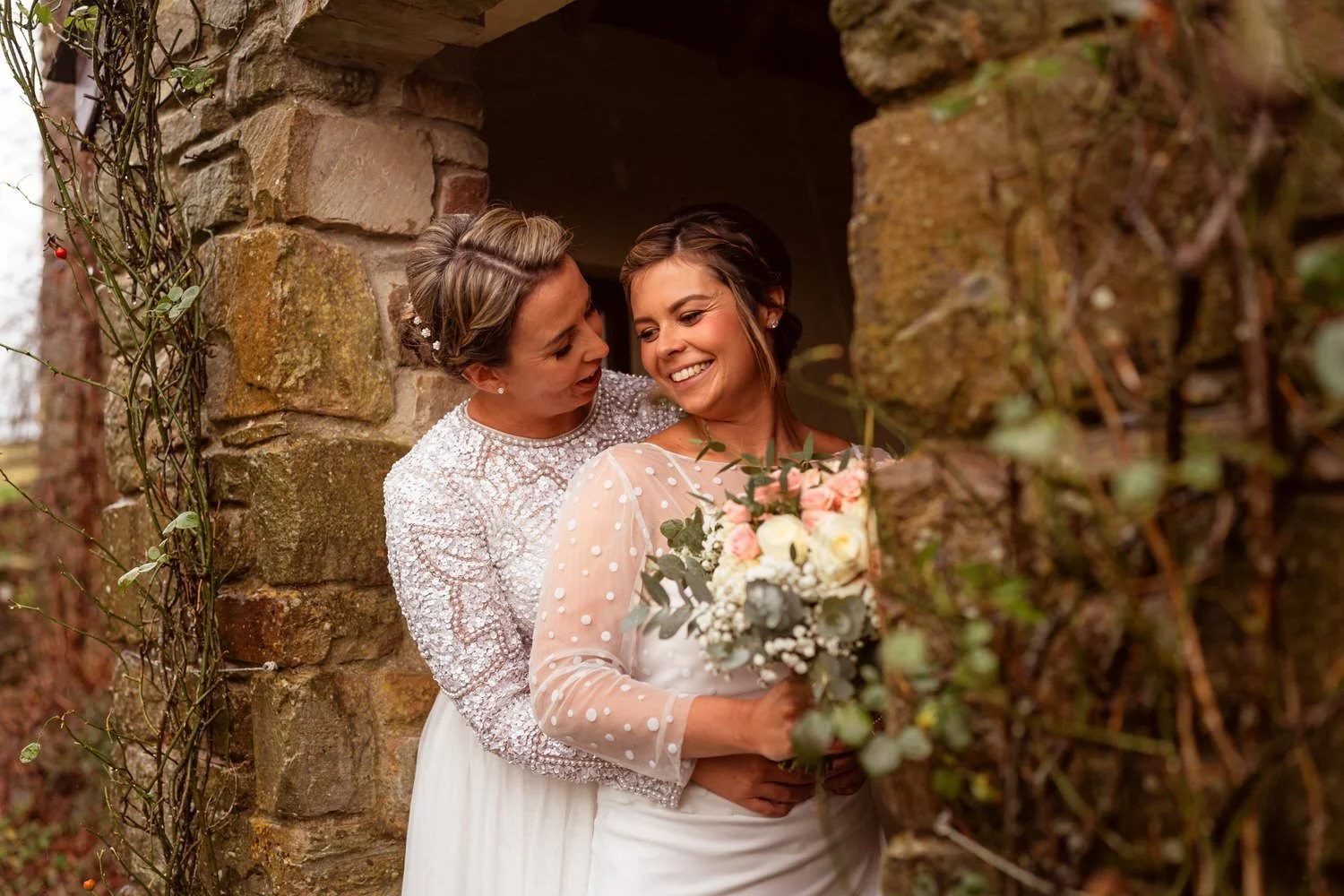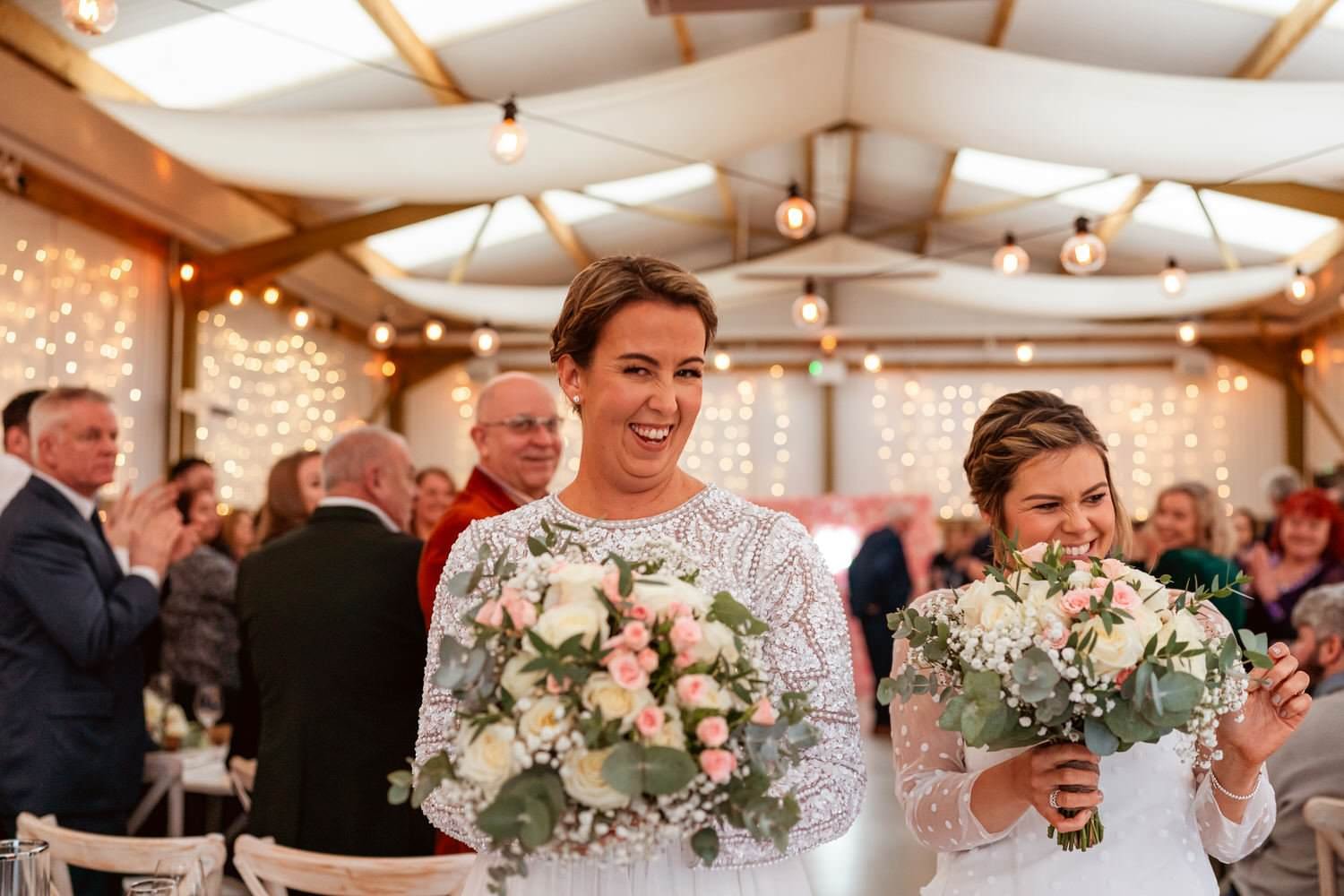 West Regwm Farm played host to the wedding of these two crazy cats, Laura & Chloe, on a VERY rainy day. An LGBT wedding with an LGBT wedding photographer.