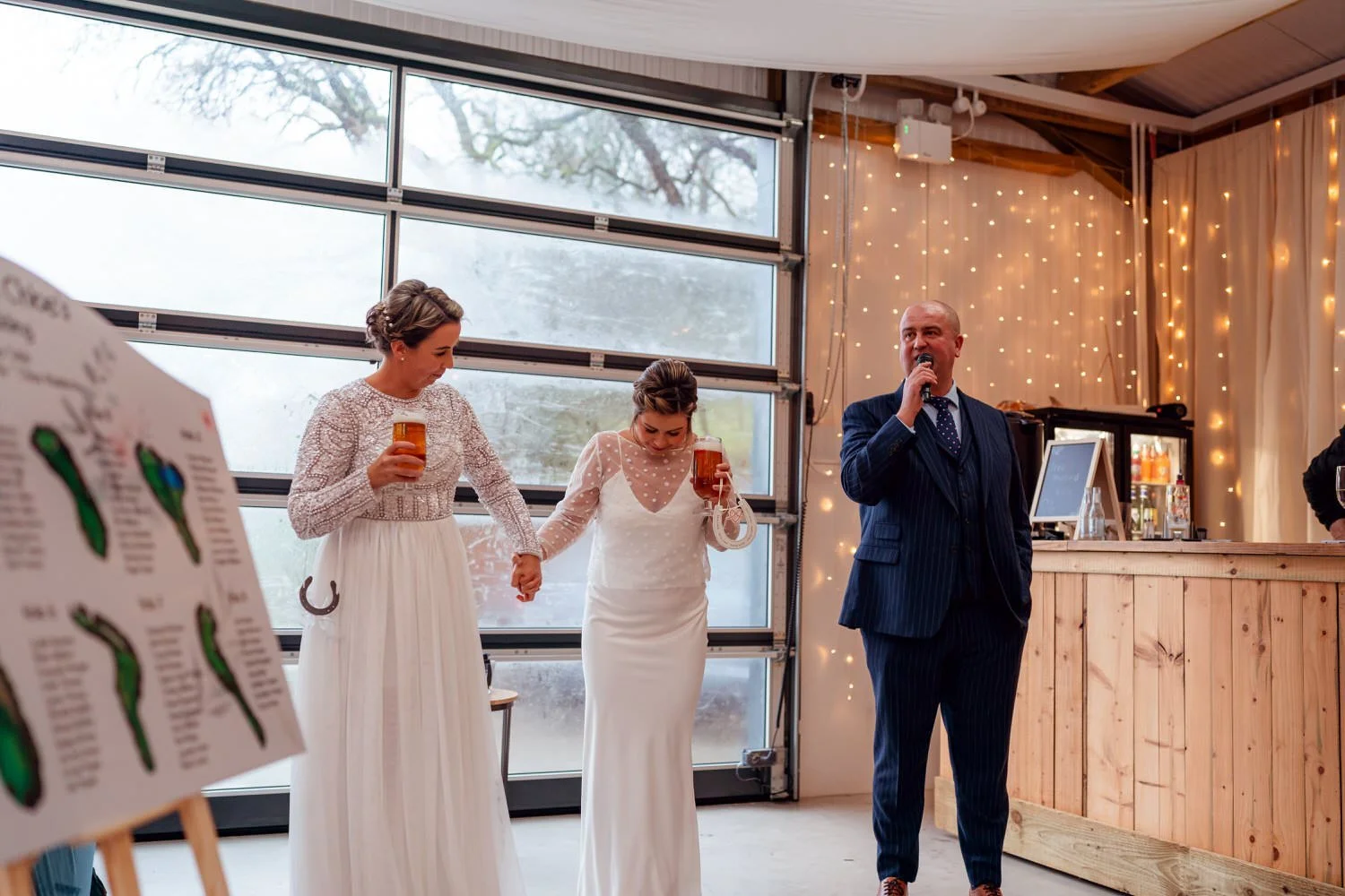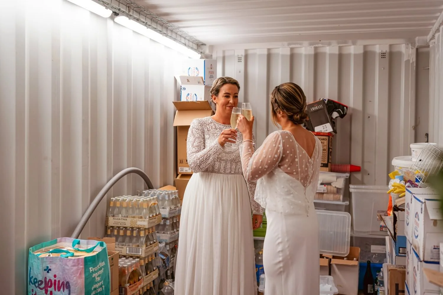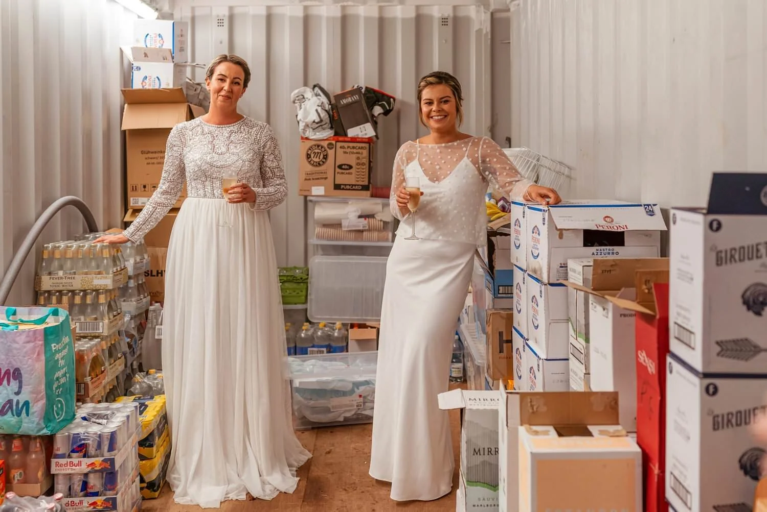 Laura & Chloe were explicit: they wanted a simple, relaxed day with lots of partying among friends and family, with their wedding photos representing this. I’m not sure they quite wanted that much rain, but they didn’t complain about it once. We even went for a skip about, under umbrellas. The couple met just before they went down the aisle, in the alcohol storage container of all places. No frills, no fuss - it was hilarious, but as they said, it suited them to stand around surrounded by their favorite lager, Peroni.